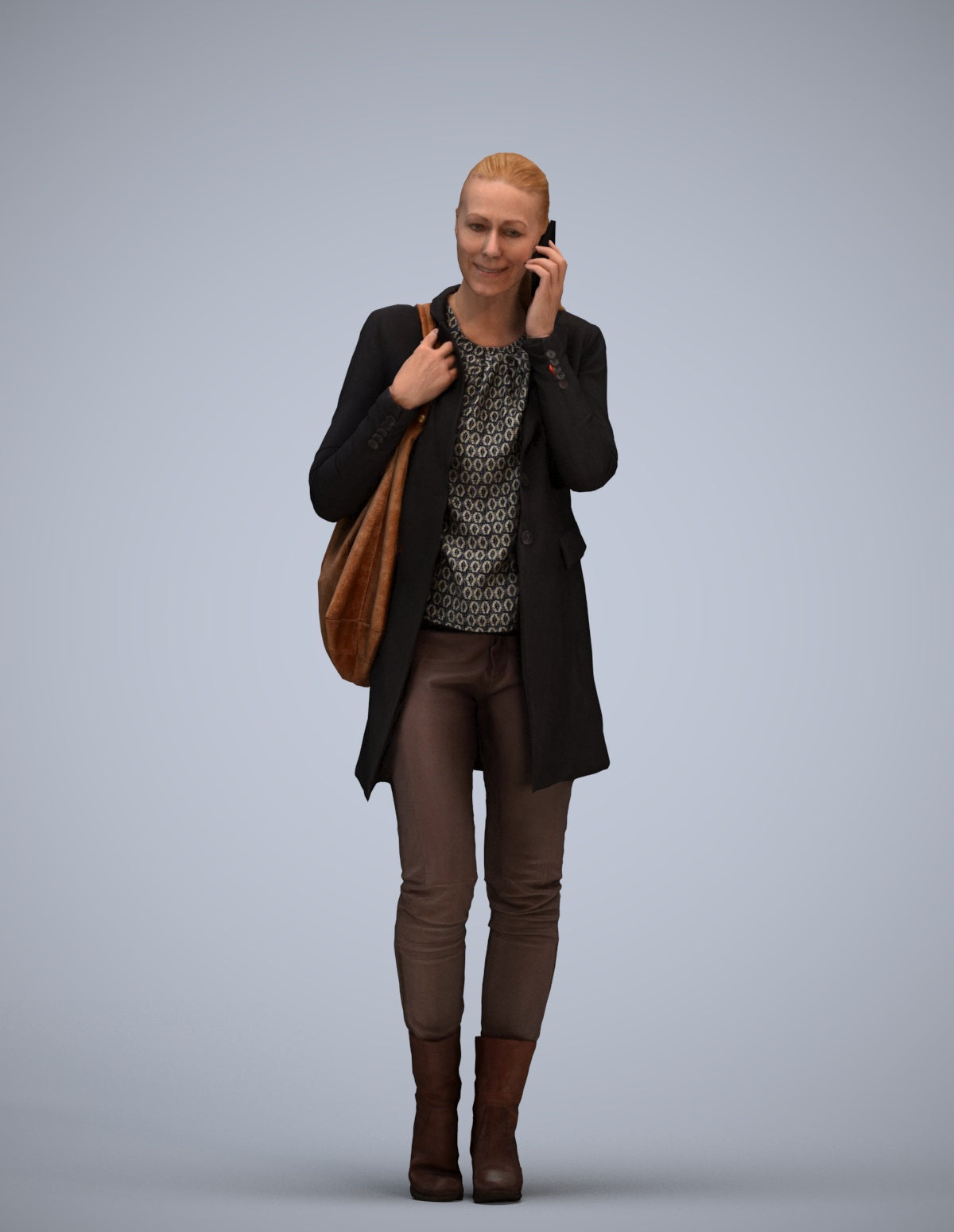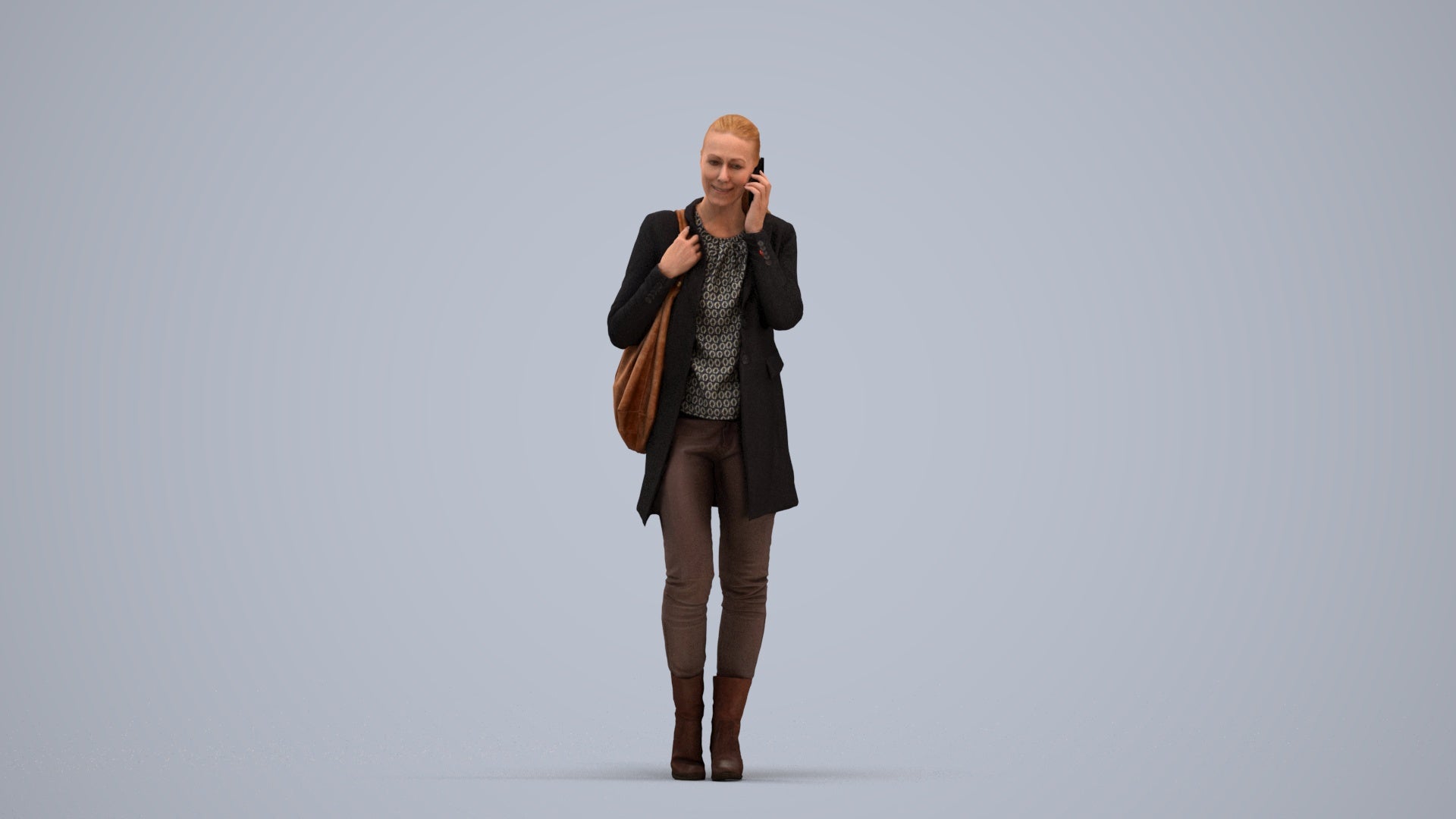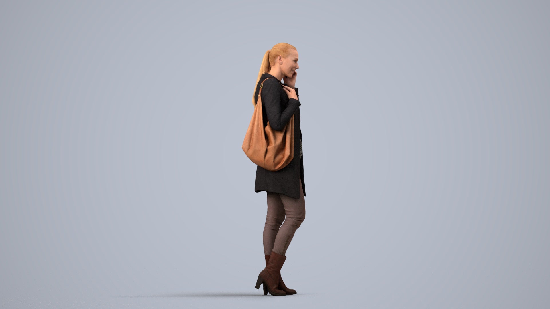 00049Linda005, architectural visualization, people, human, walking, crowd, Woman, Cell phone, Talking,Conversation,Call, Smartphone