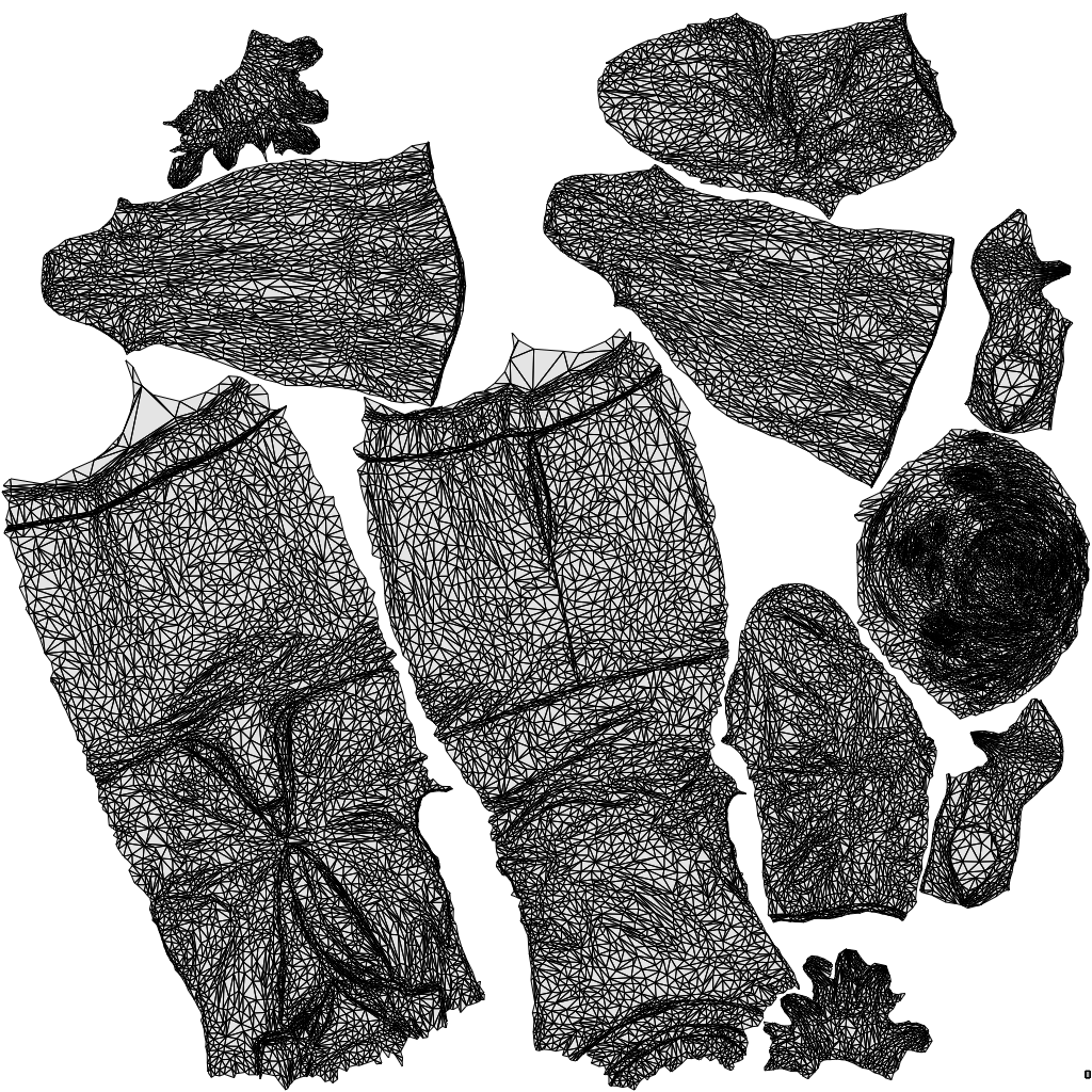 3D model (~40k triangles, ~20k vertices per person) + 2k jpg color texture.