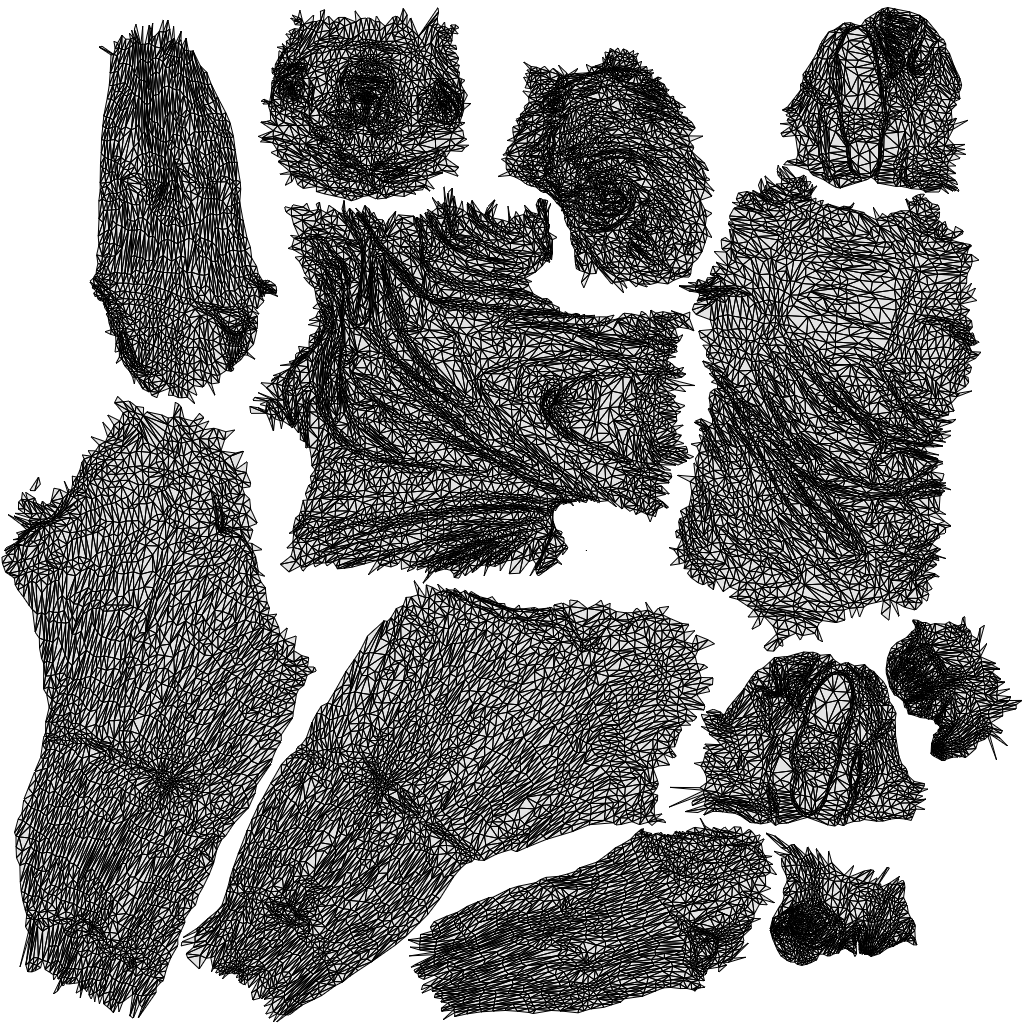 3D model (~40k triangles, ~20k vertices per person) + 2k jpg color texture.