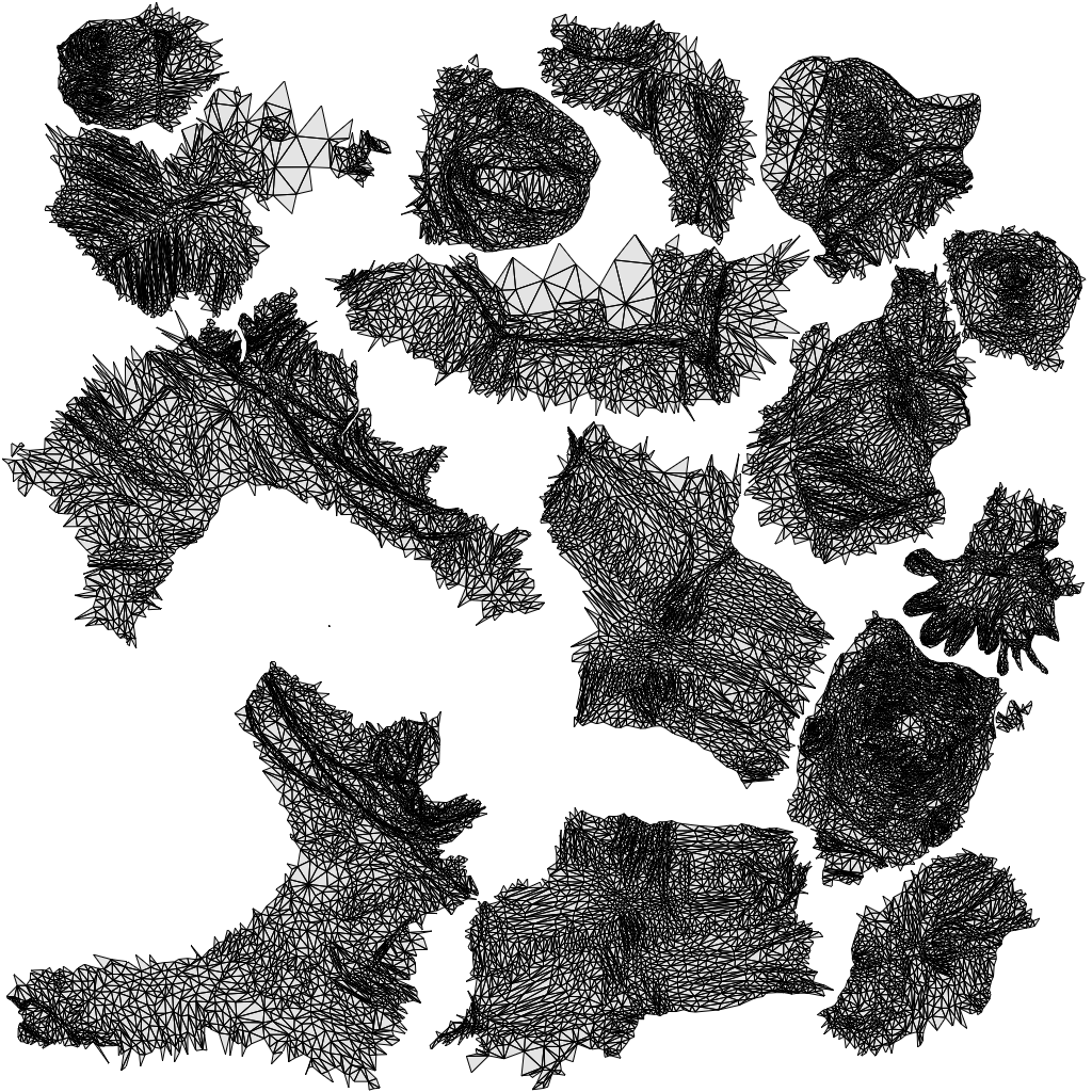 3D model (~40k triangles, ~20k vertices per person) + 2k jpg color texture.