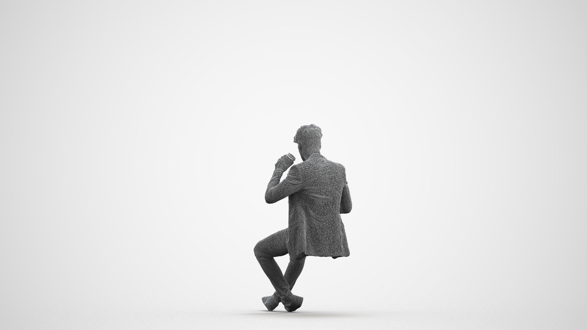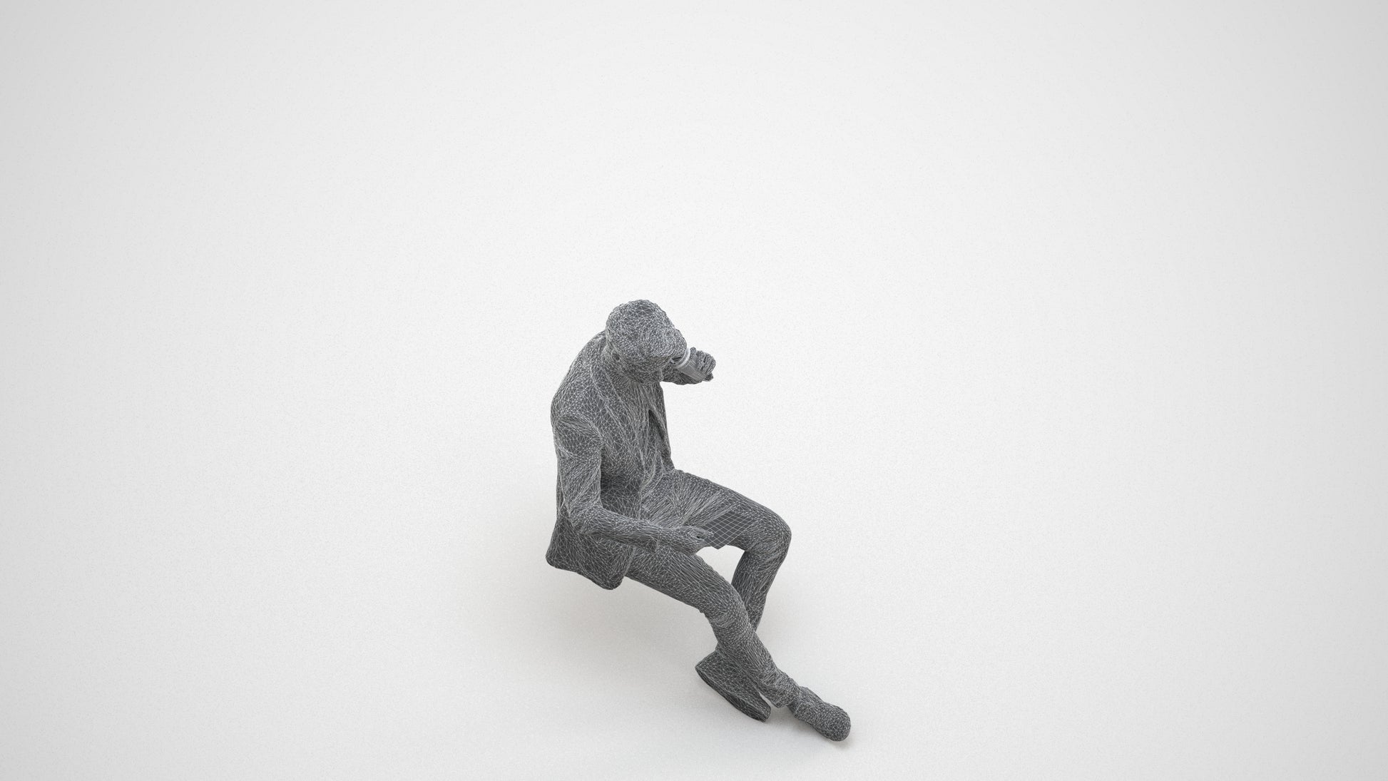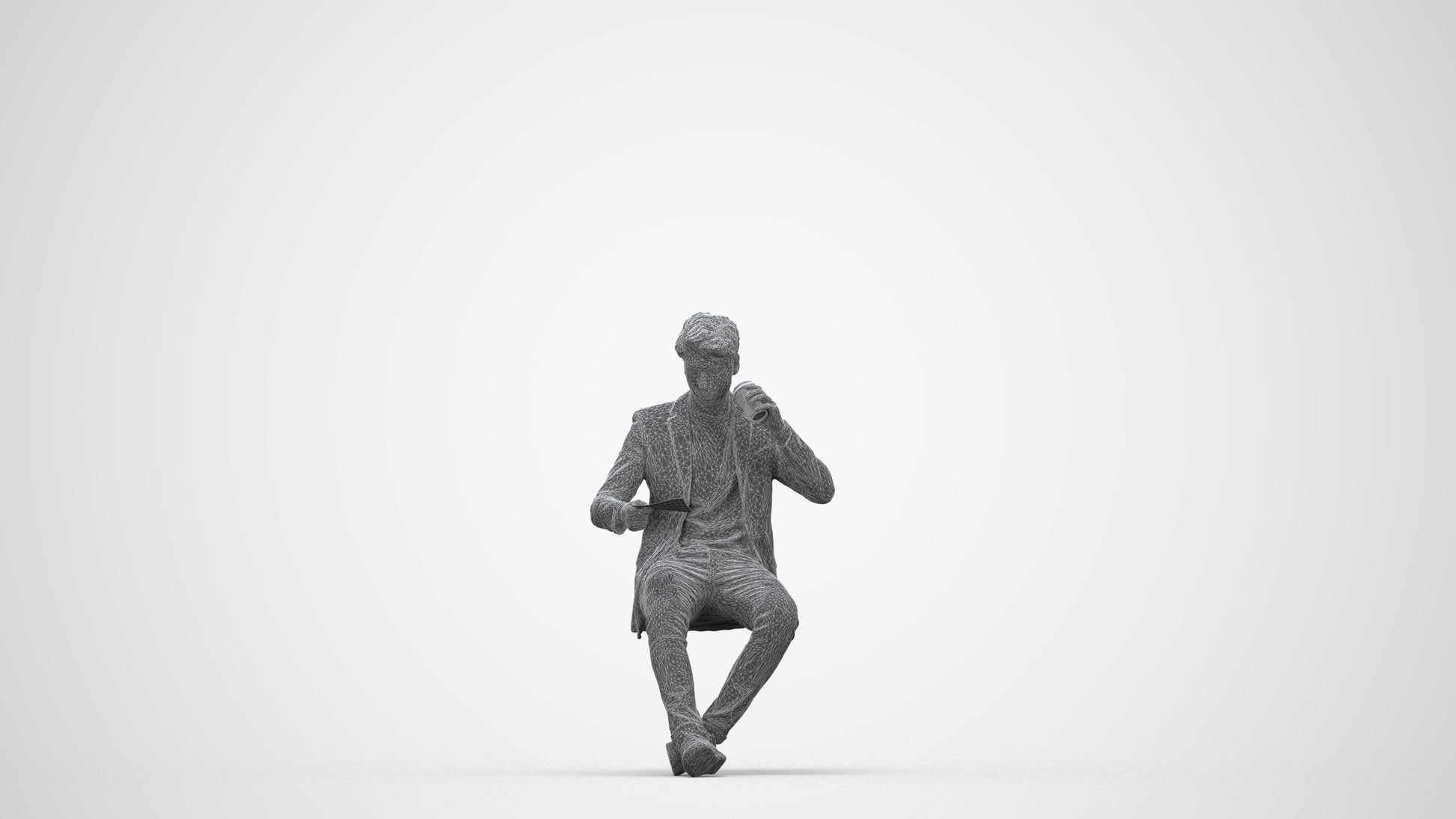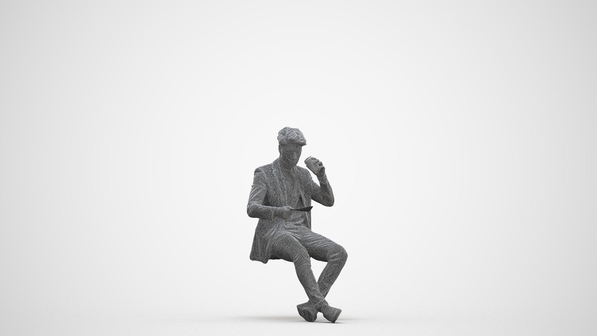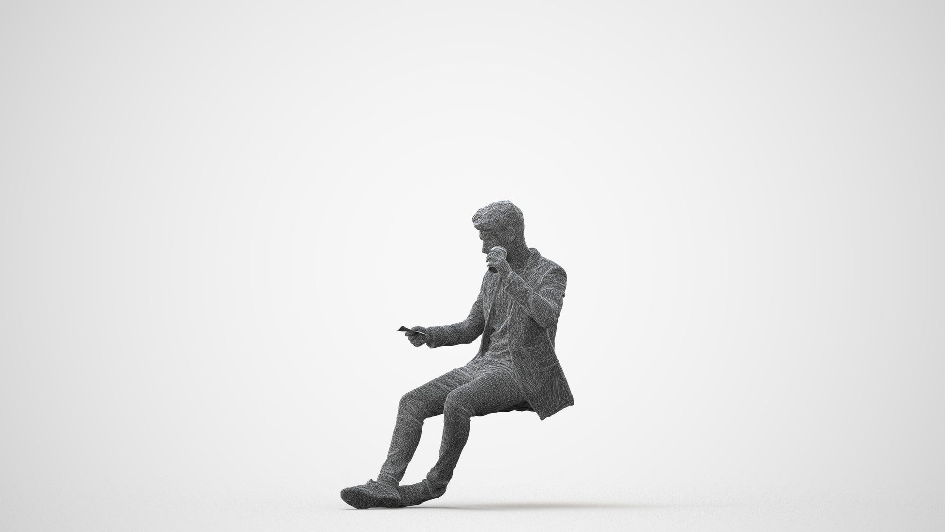 00073Darion005, architectural visualization, people, human, crowd, man, sitting, cement block, outdoor, sunny, relaxation, casual, leisure, alone, contemplation, outdoor seating
