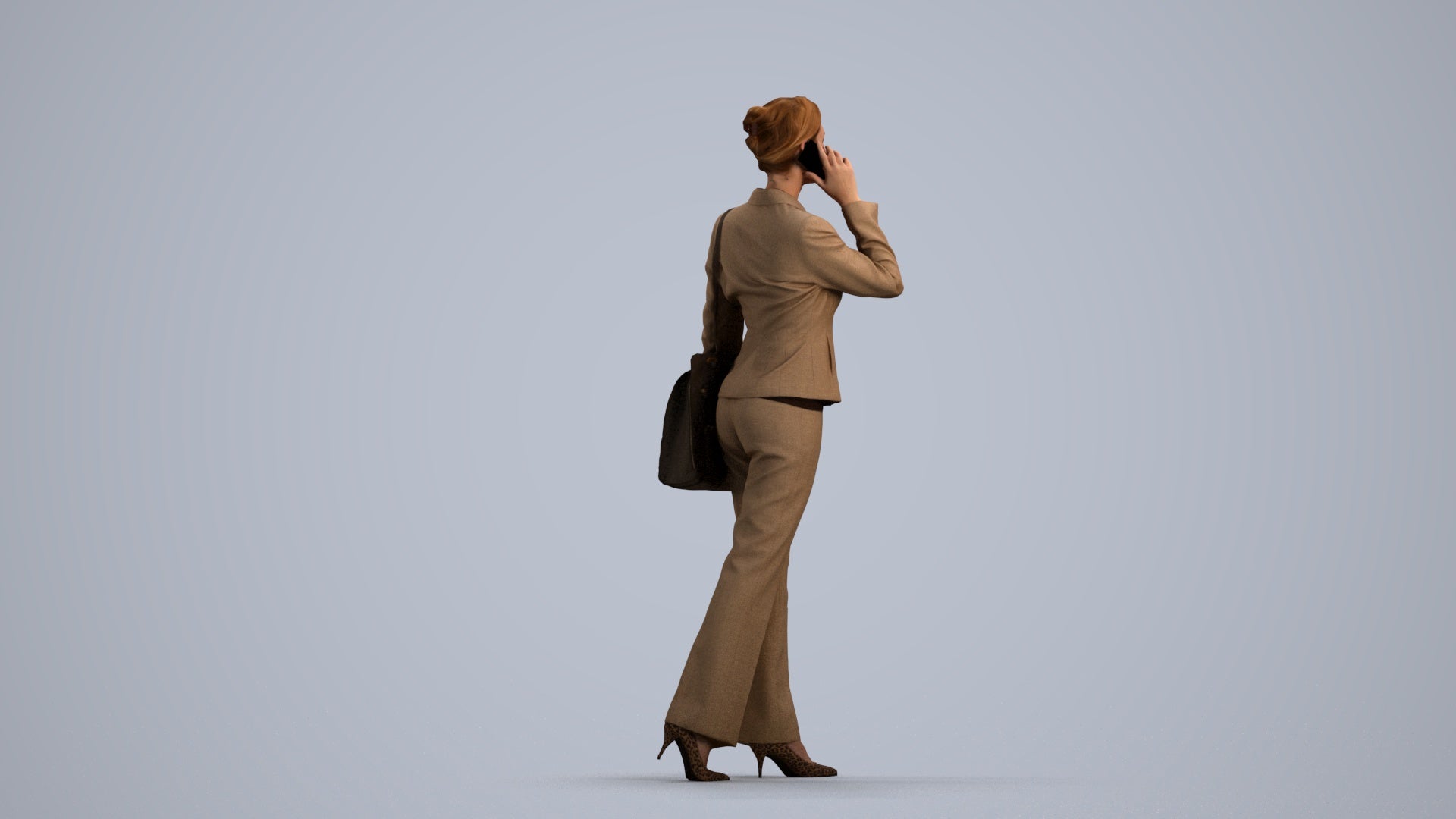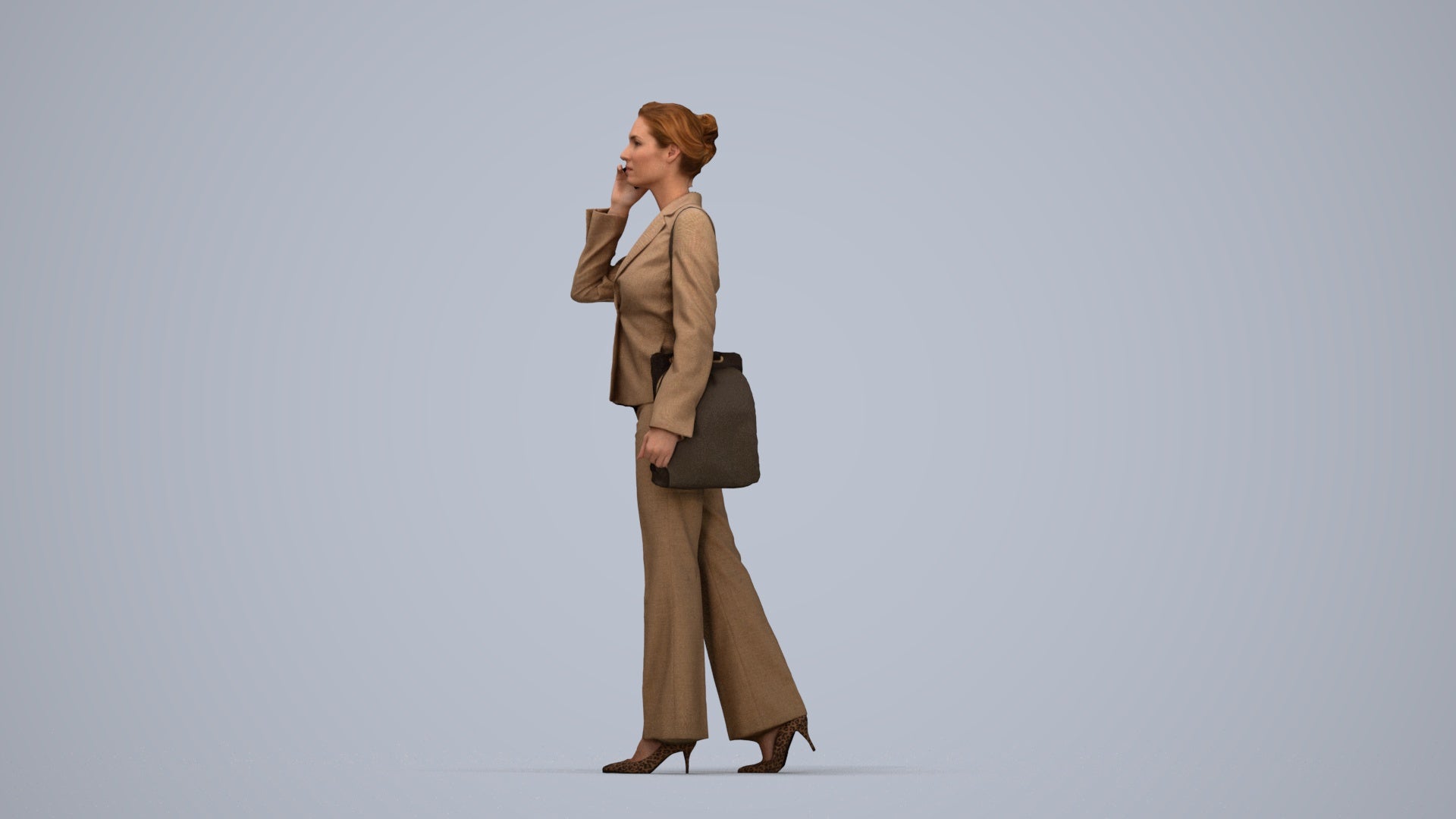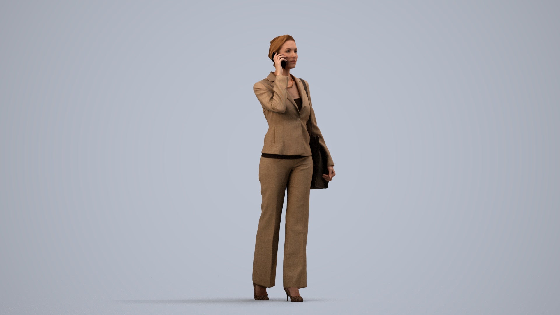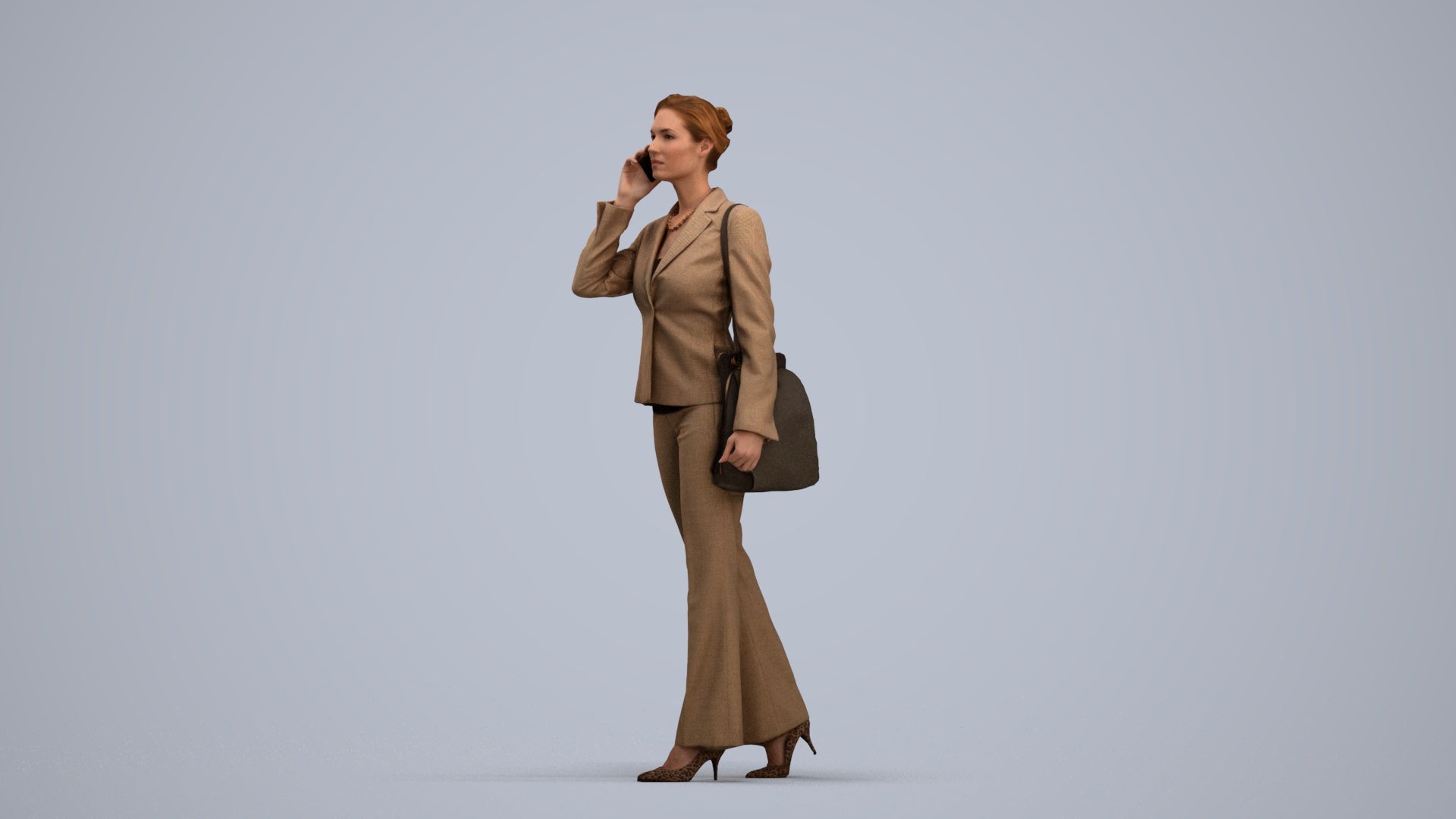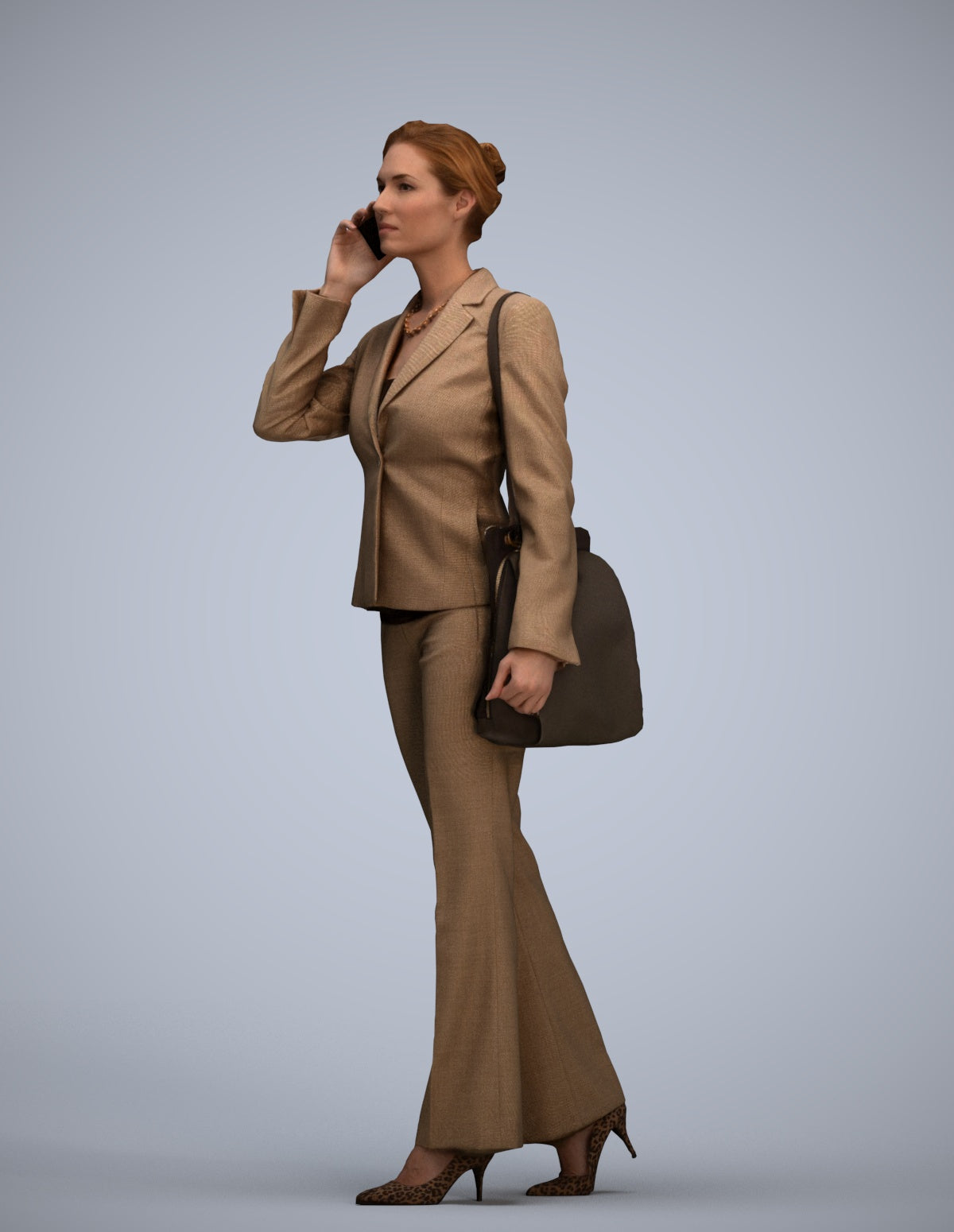 female, adult, caucasian, business, autumn_spring, office, calling, laptop, smartphone, spring, autumn, 1_people, walking, 00109_Halle013, businesswoman, professional, phone, talking, suit, corporate, executive, manager, worker, employee, buisness, mobile, cellphone, telephoning, conversation, briefcase, handbag, bag, standing, workwear