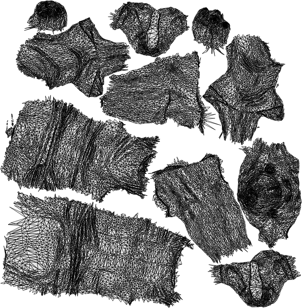3D model (~40k triangles, ~20k vertices per person) + 2k jpg color texture.