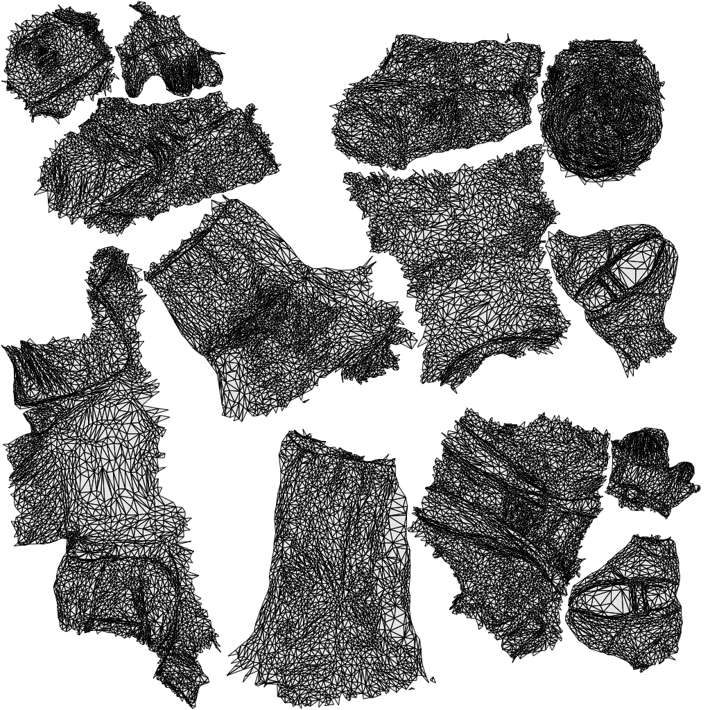 3D model (~40k triangles, ~20k vertices per person) + 2k jpg color texture.