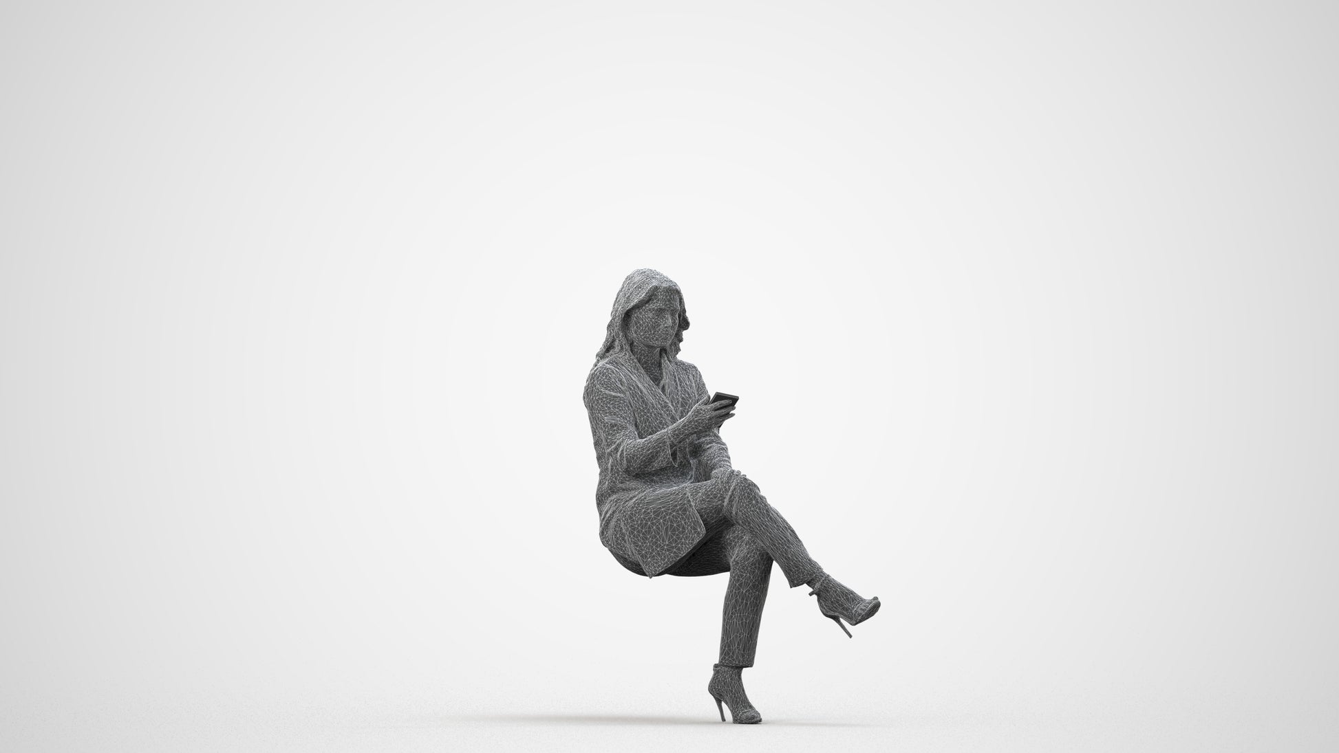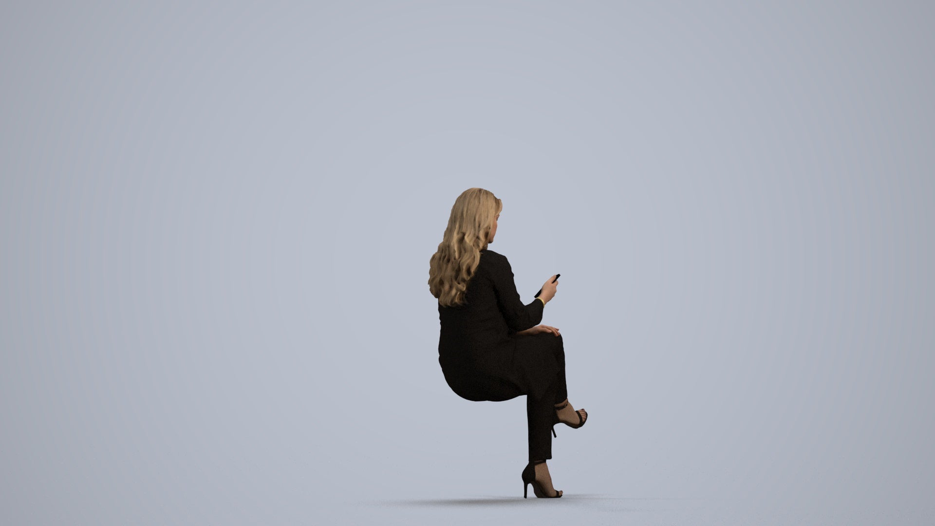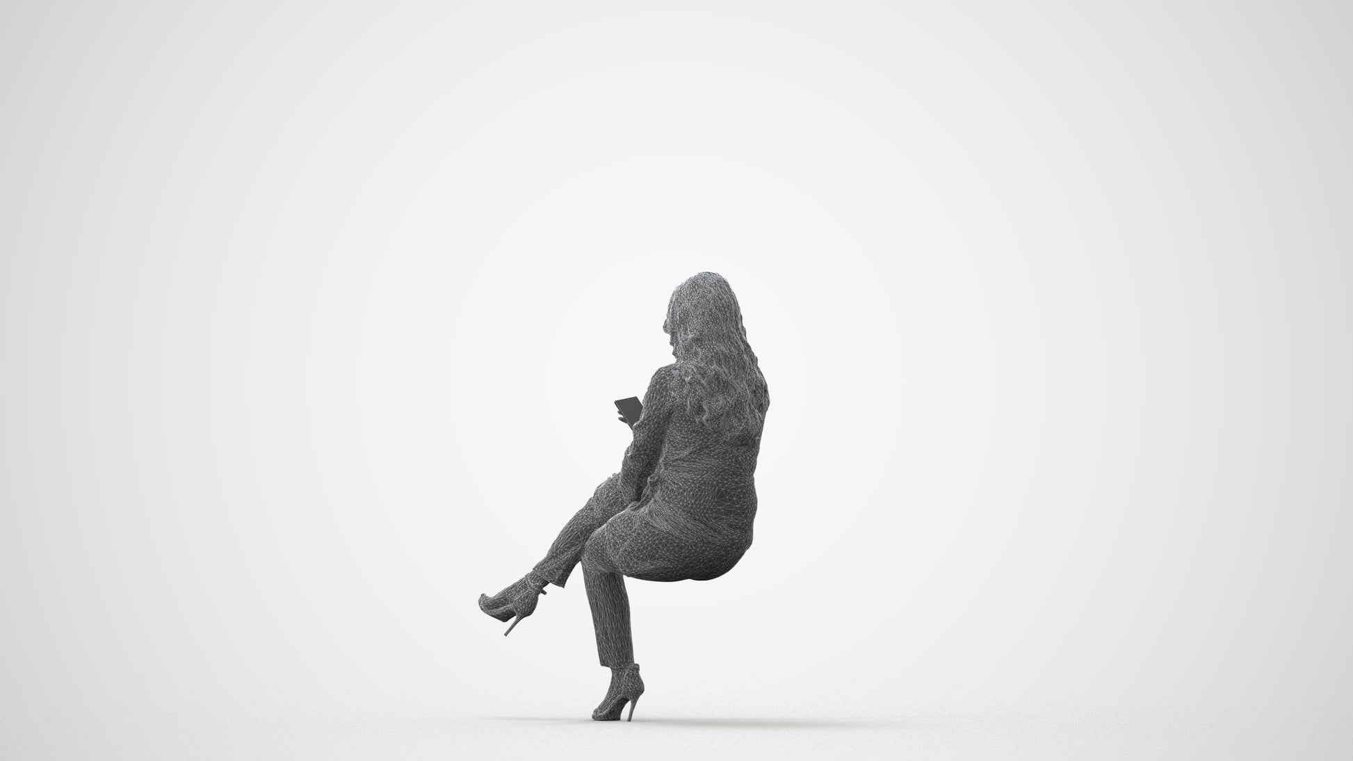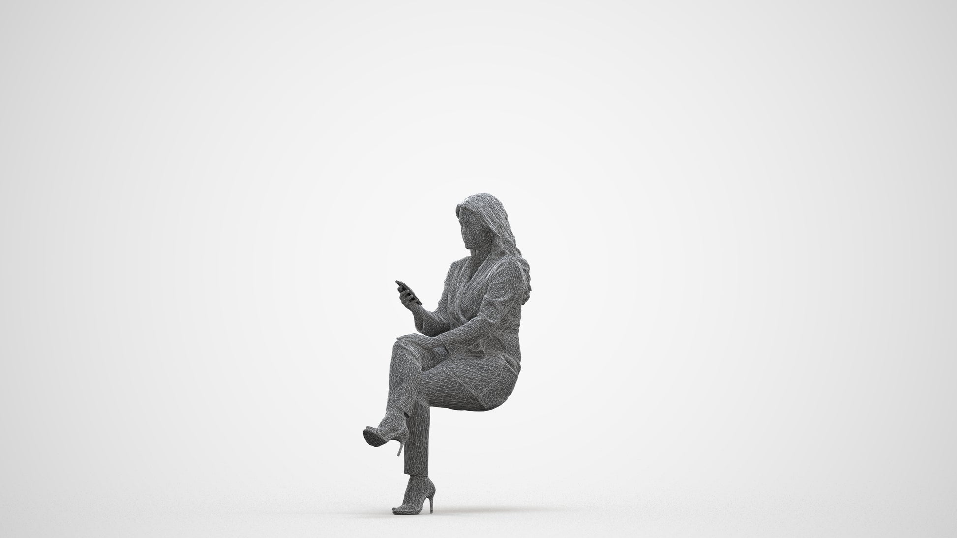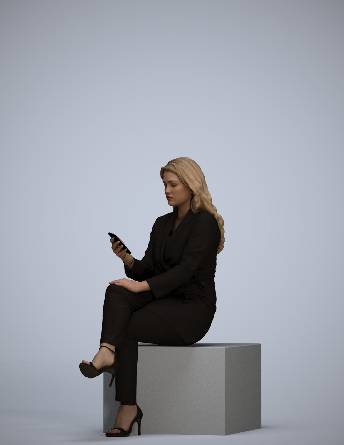00122Kiera005, architectural visualization, people, human, crowd, woman, sitting, cube, cell phone, , modern,young, casual, relaxing