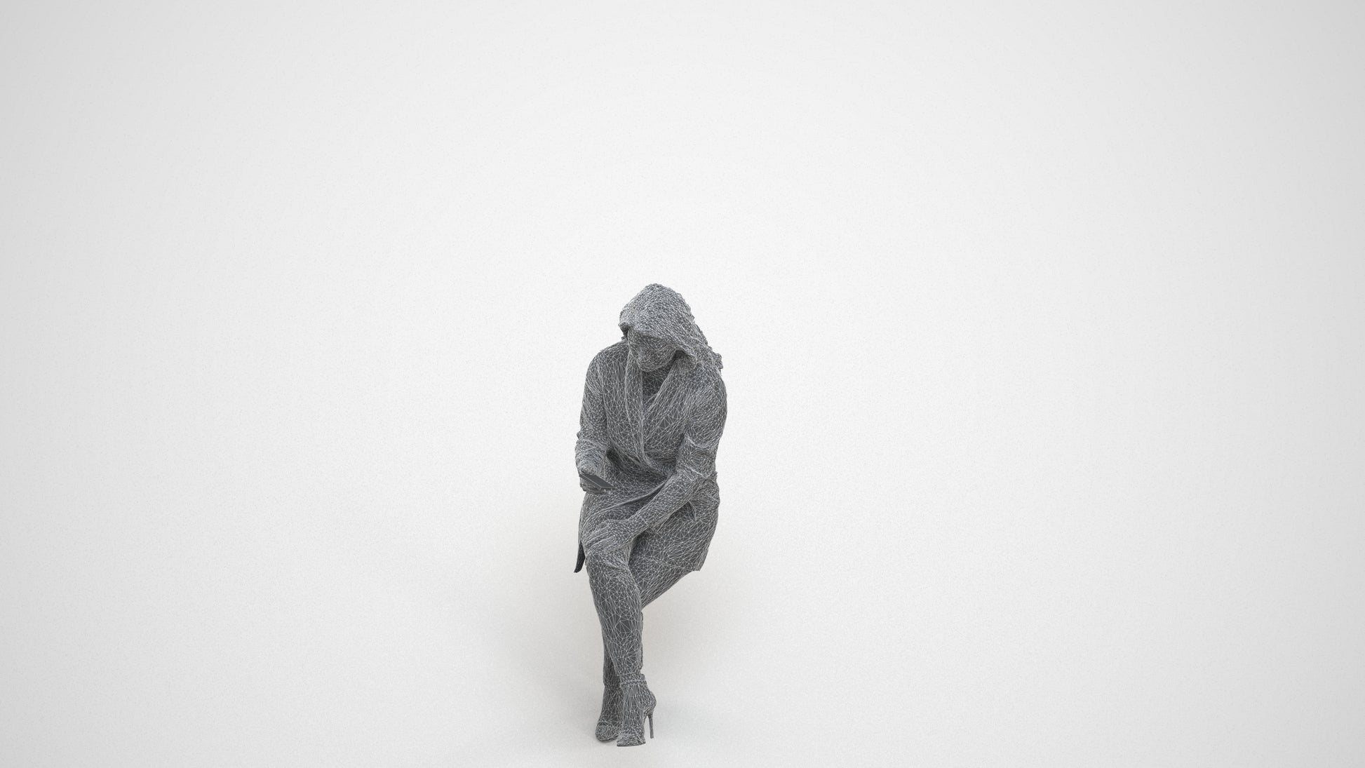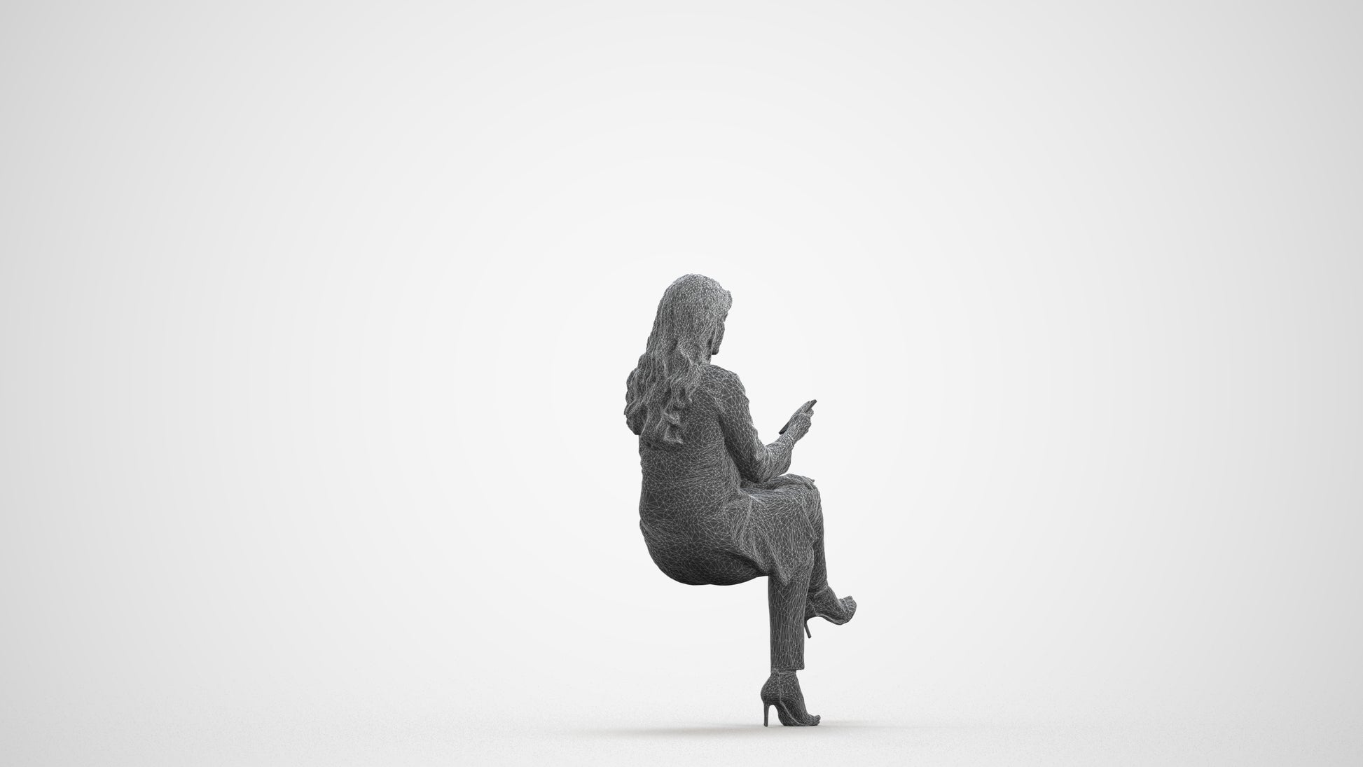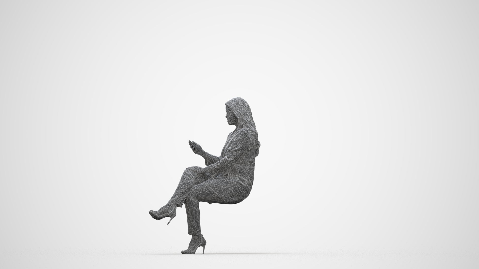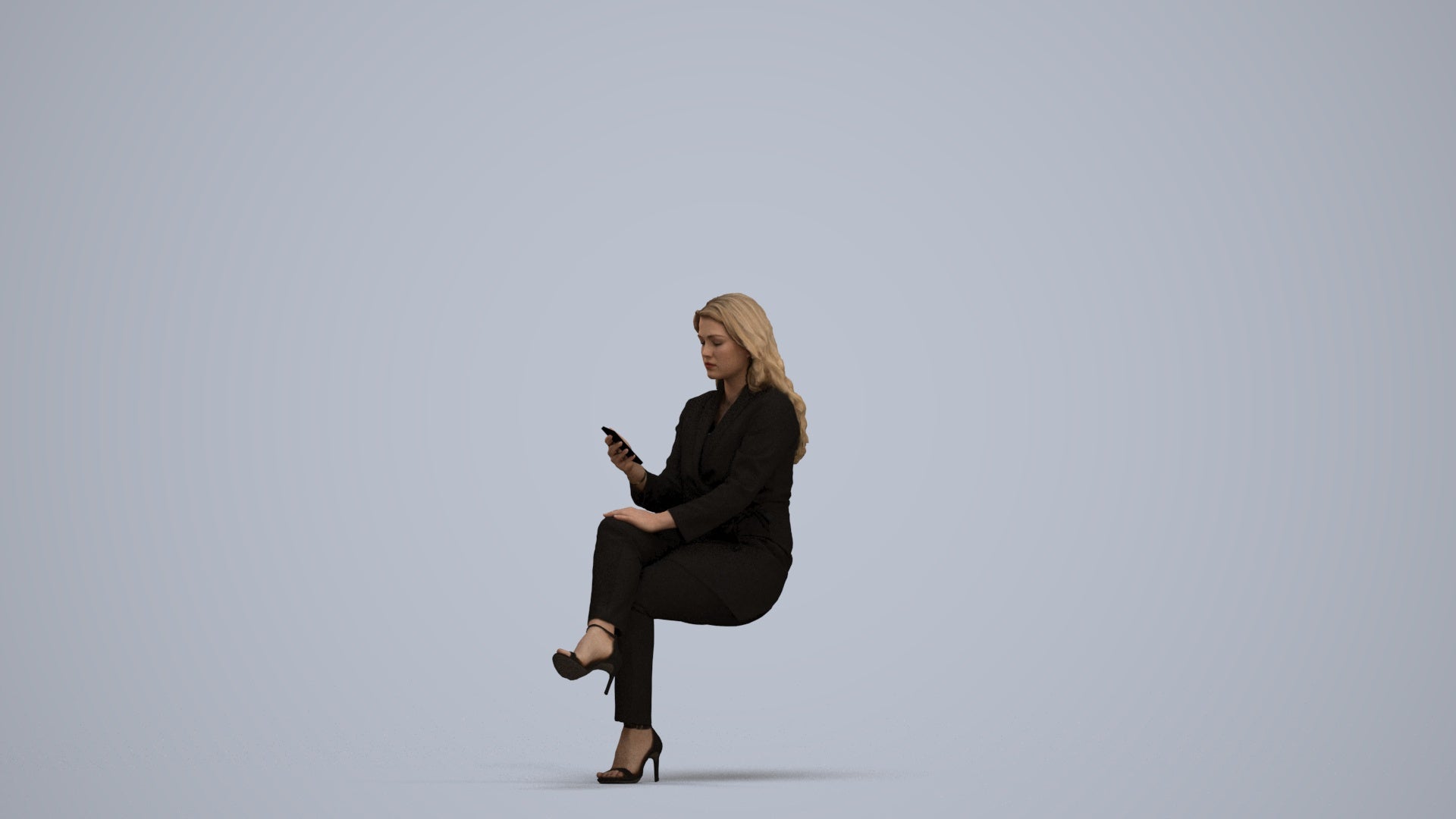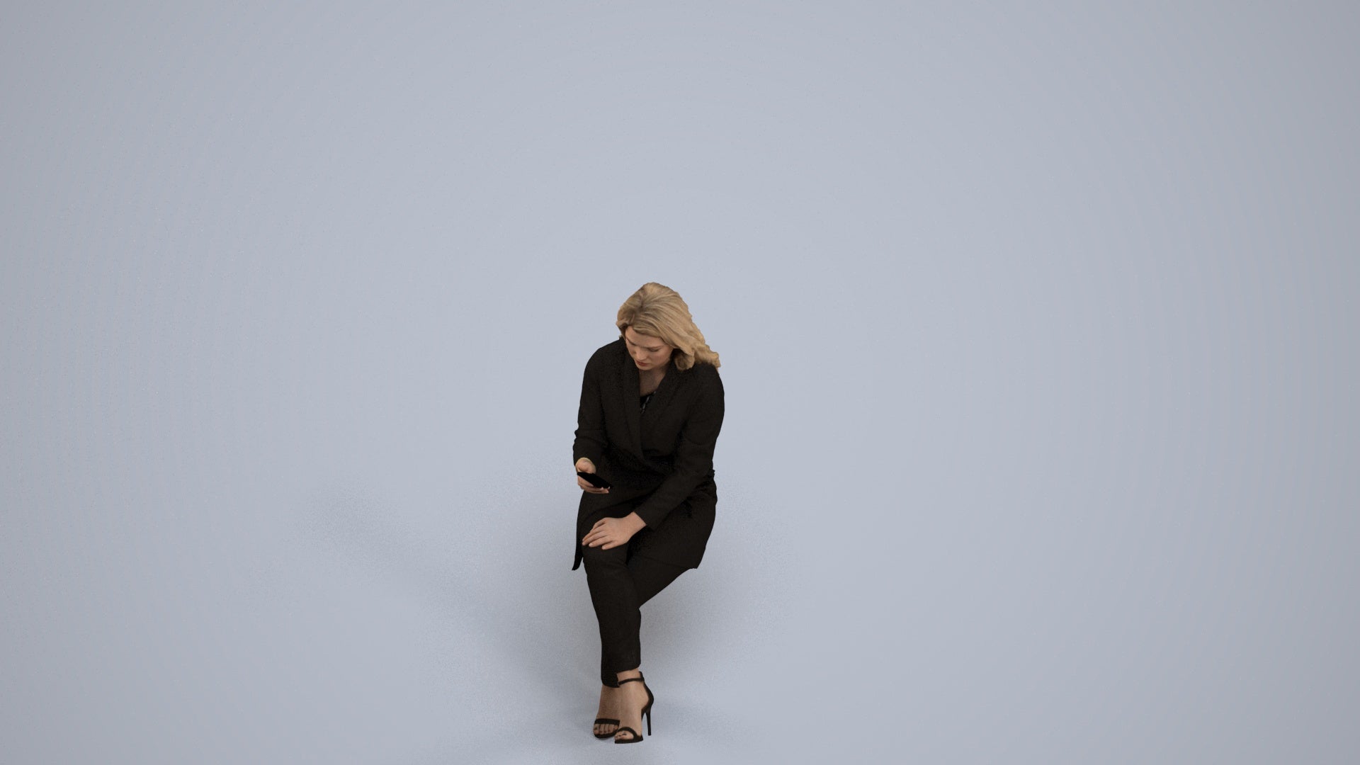 00122Kiera005, architectural visualization, people, human, crowd, woman, sitting, cube, cell phone, , modern,young, casual, relaxing