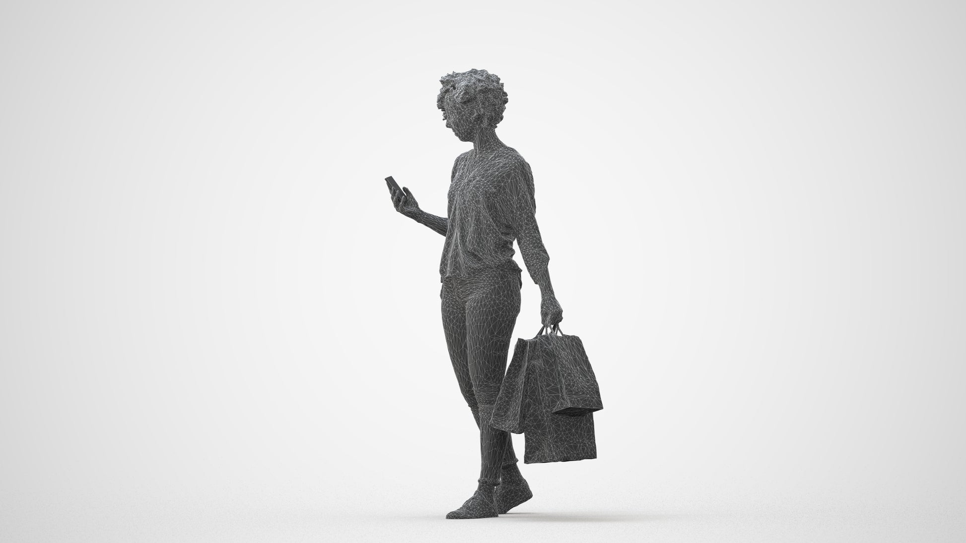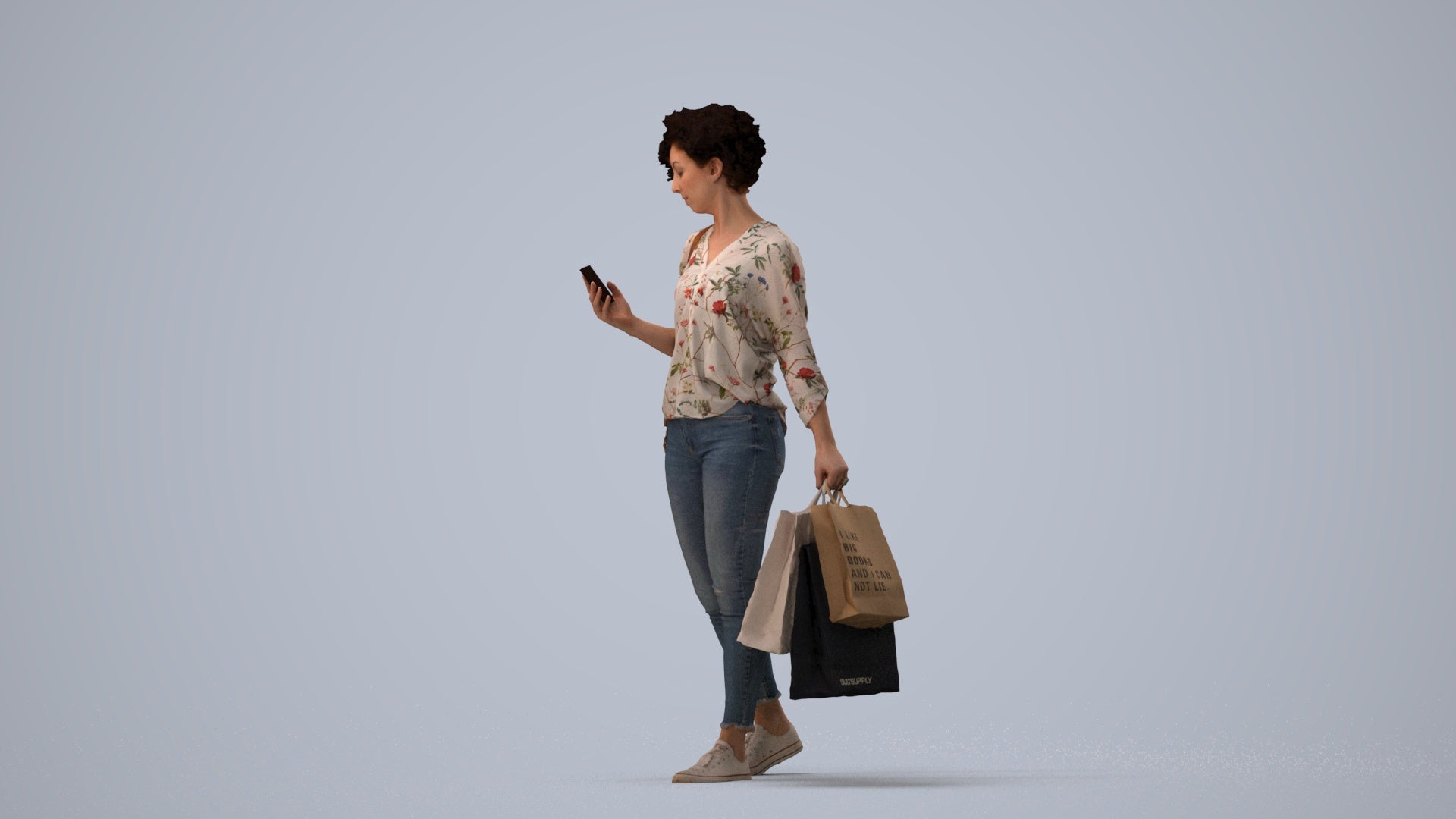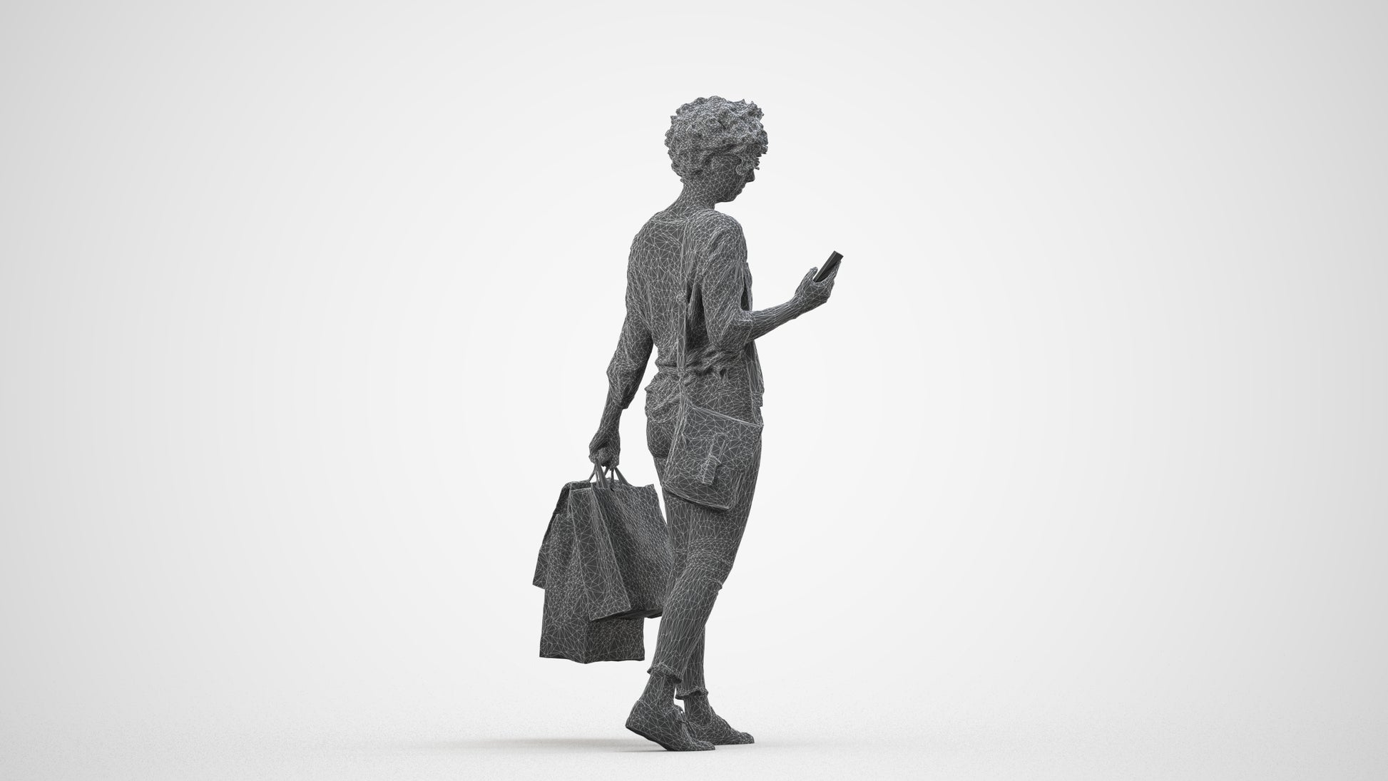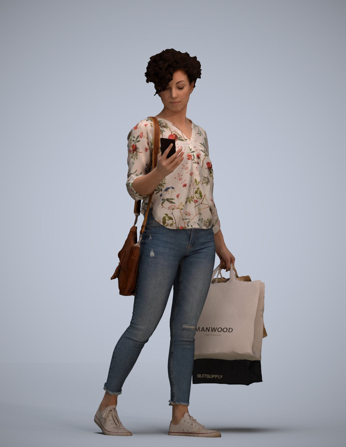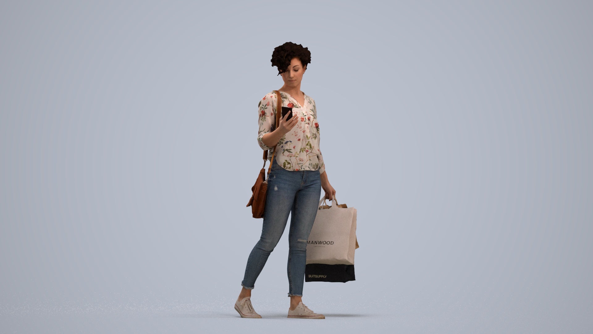 00151Lynn005, architectural visualization, people, human, crowd, woman, holding, bag, looking, phone, cellphone, mobile,busy,text messaging, modern,digital,browsing.