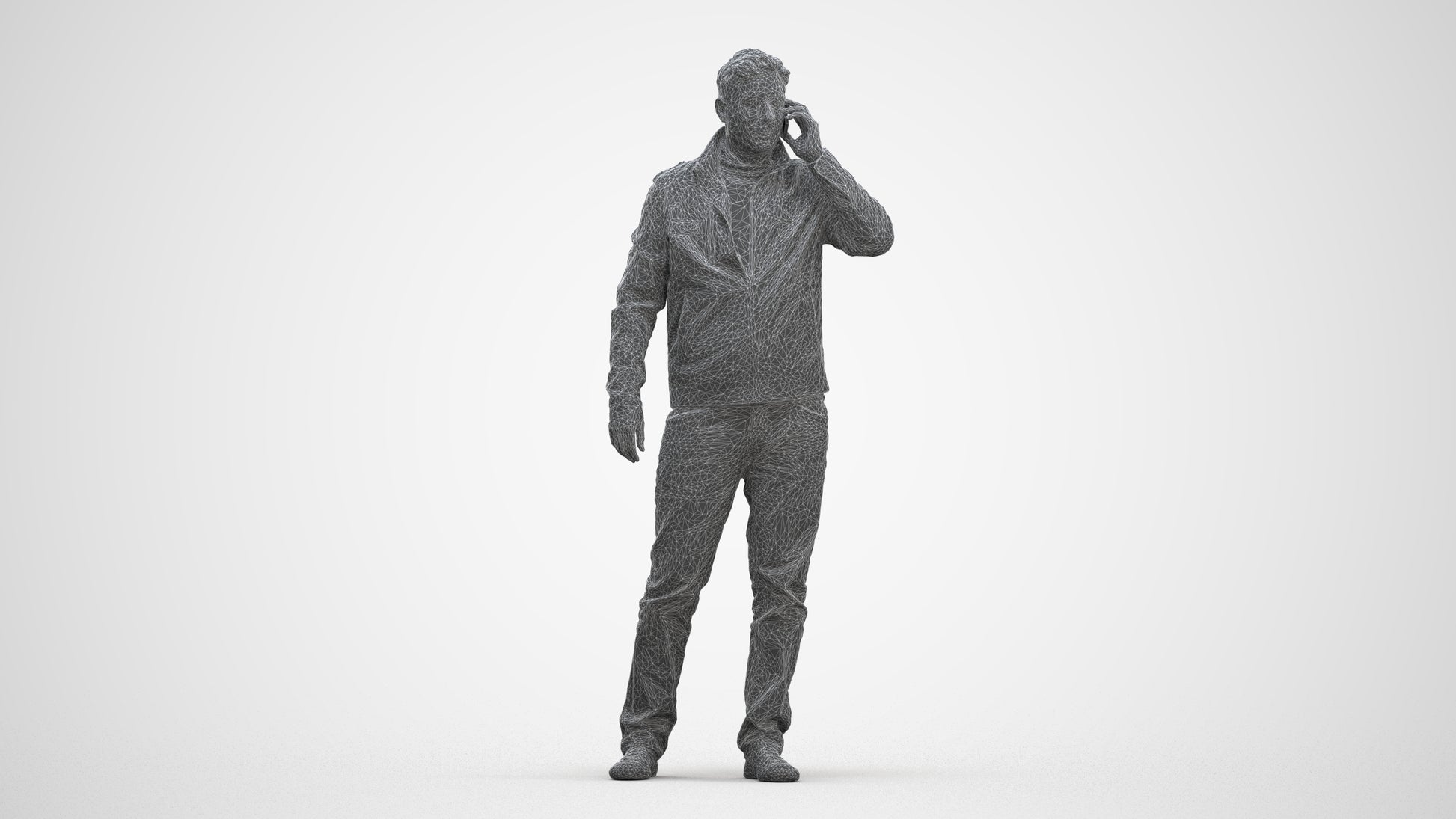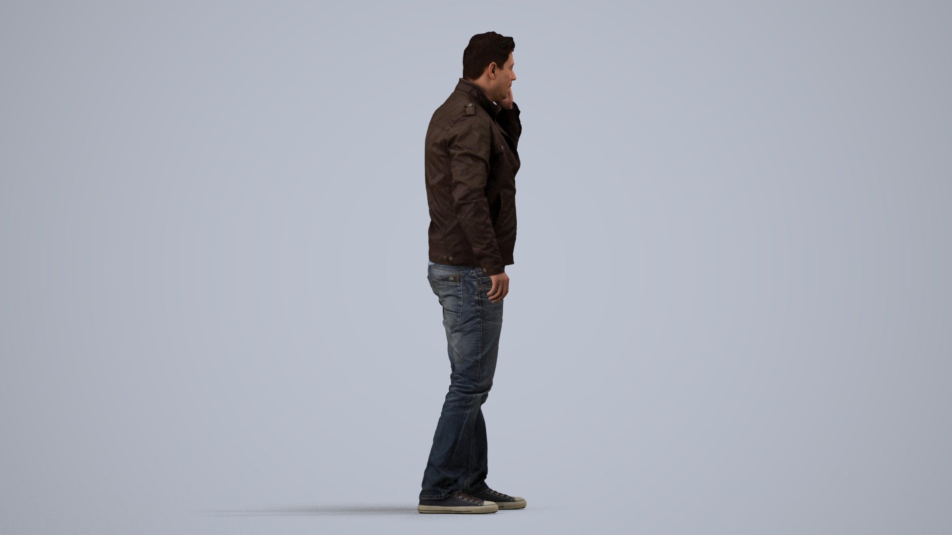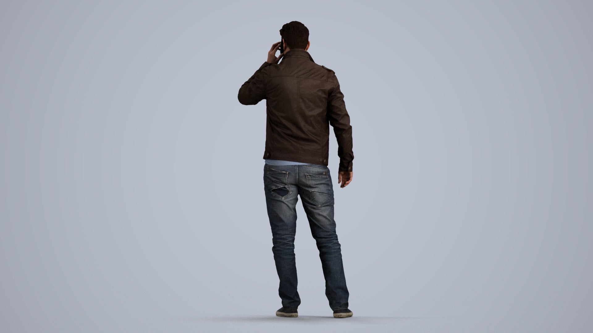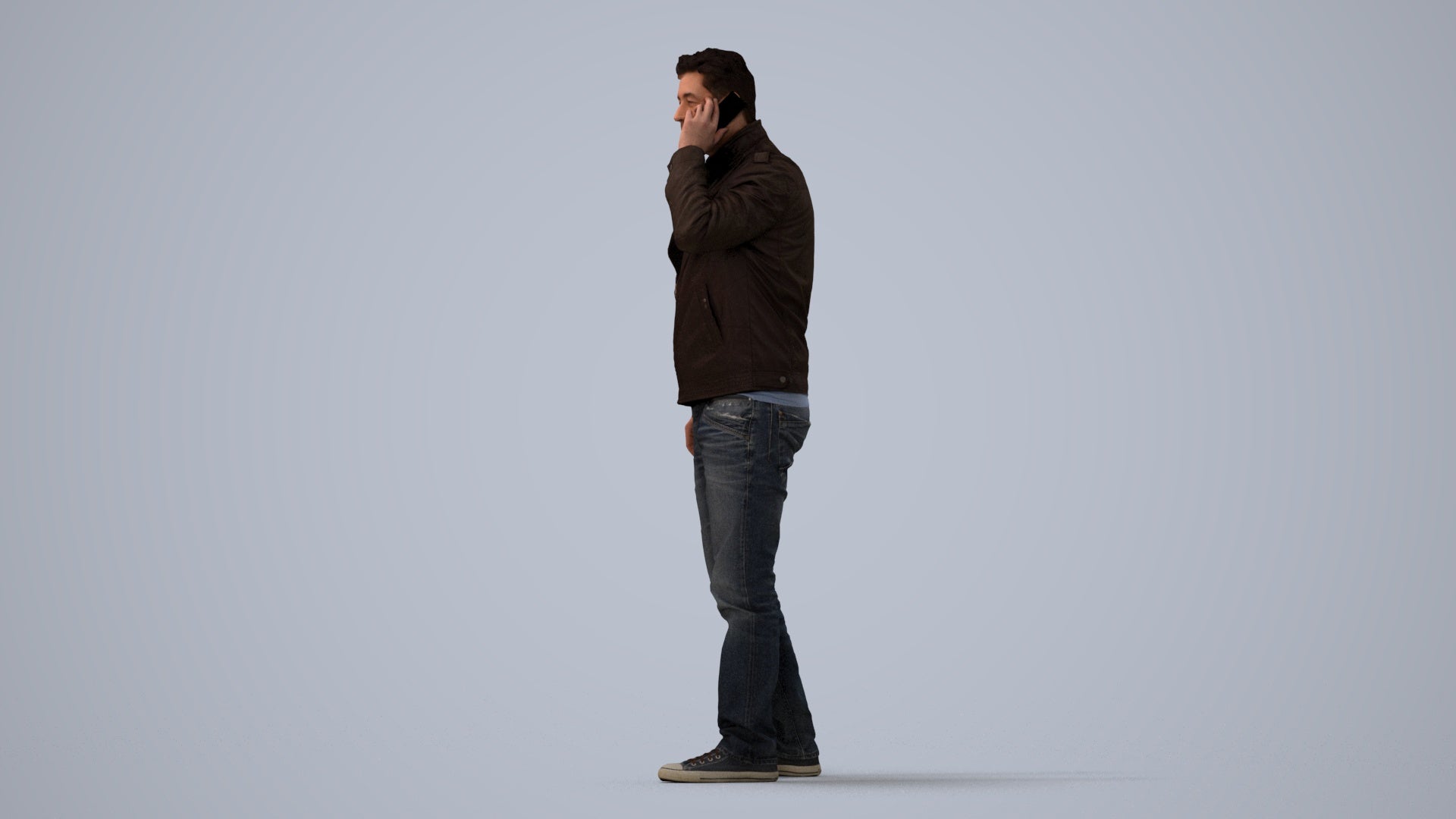 00157Connor003, architectural visualization, people, human, crowd, Man, brown jacket, talking, cell phone,casual, conversation