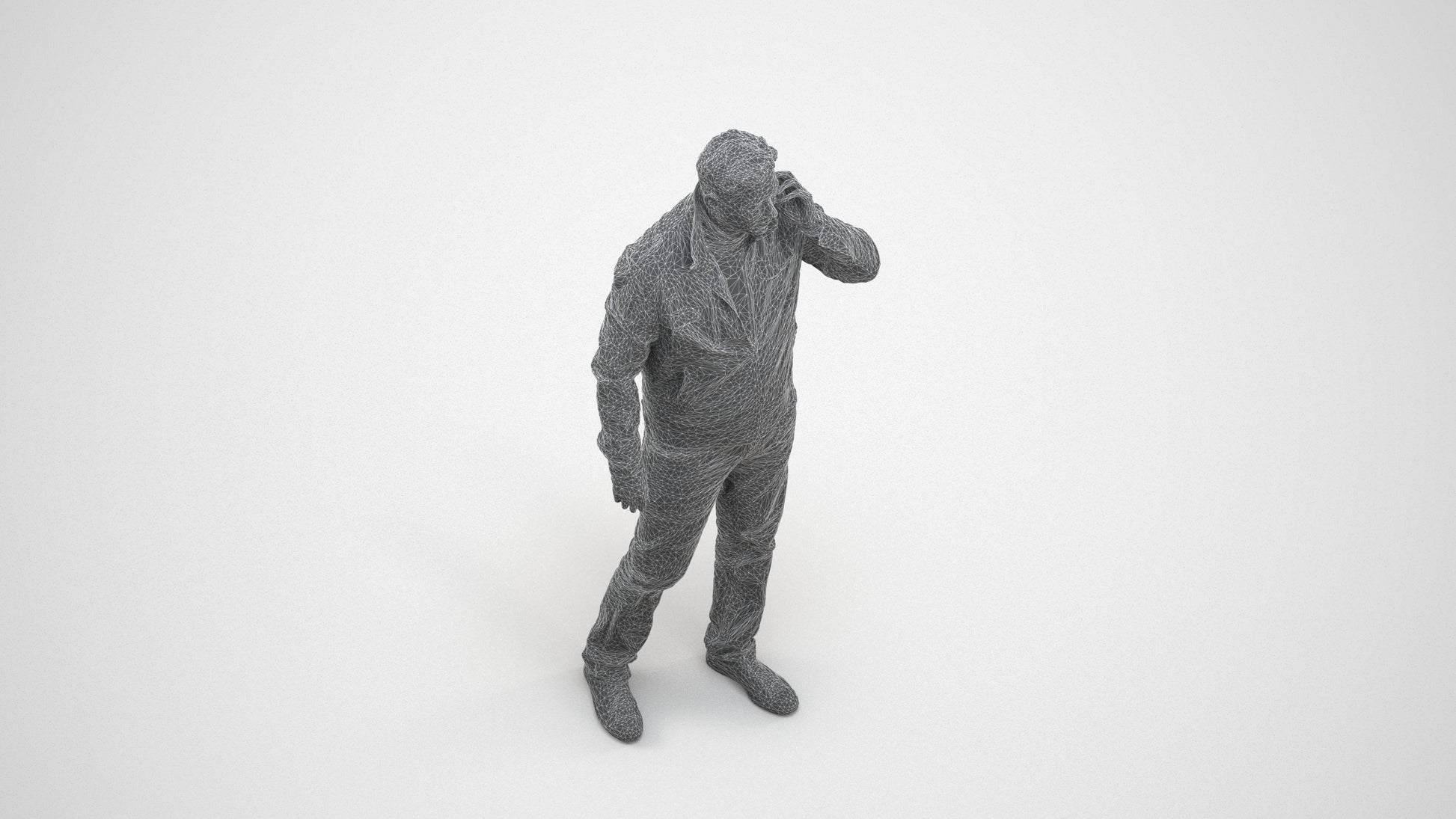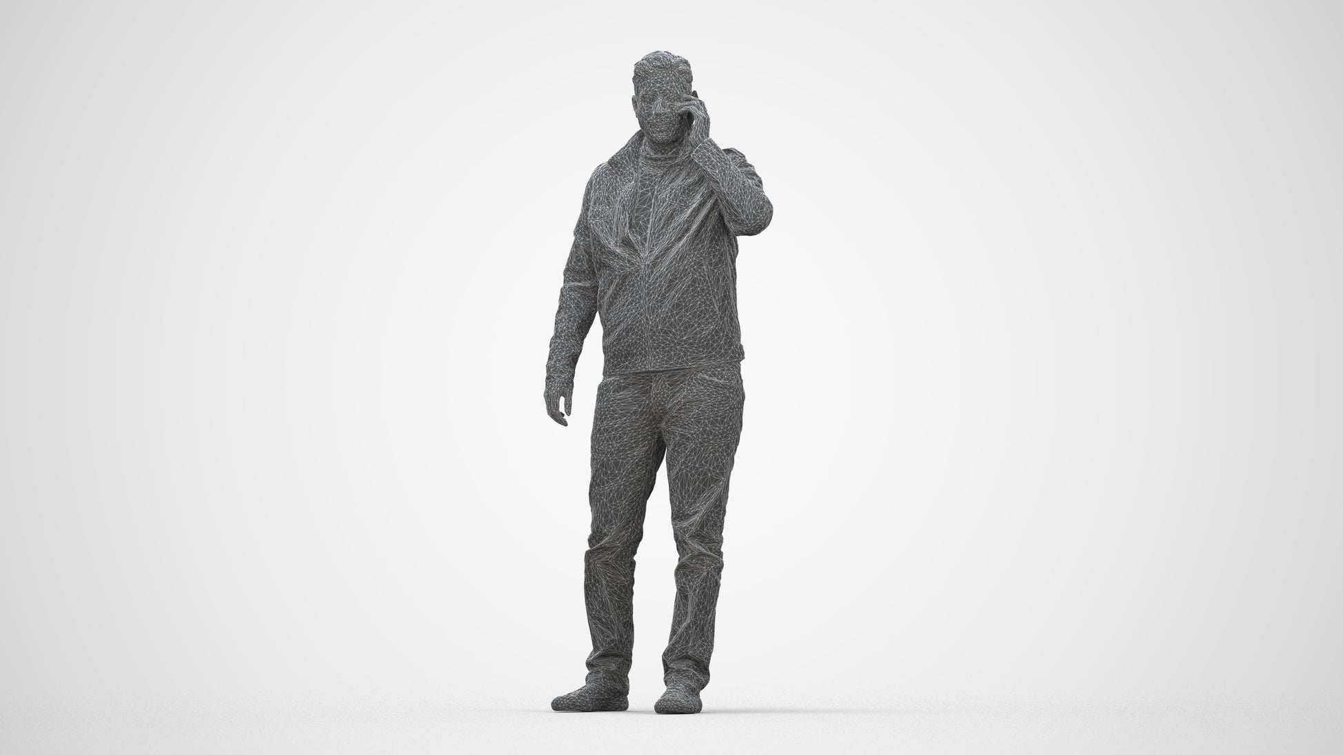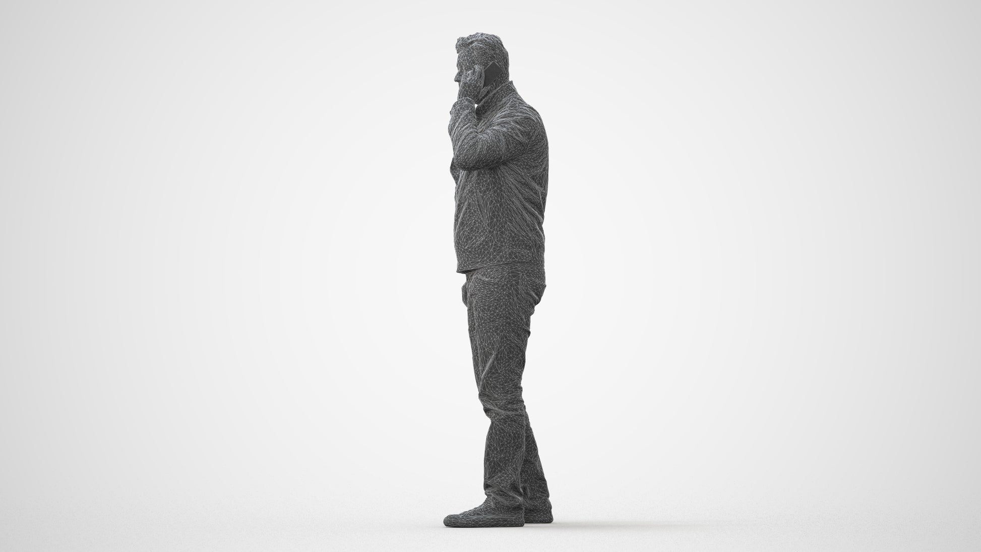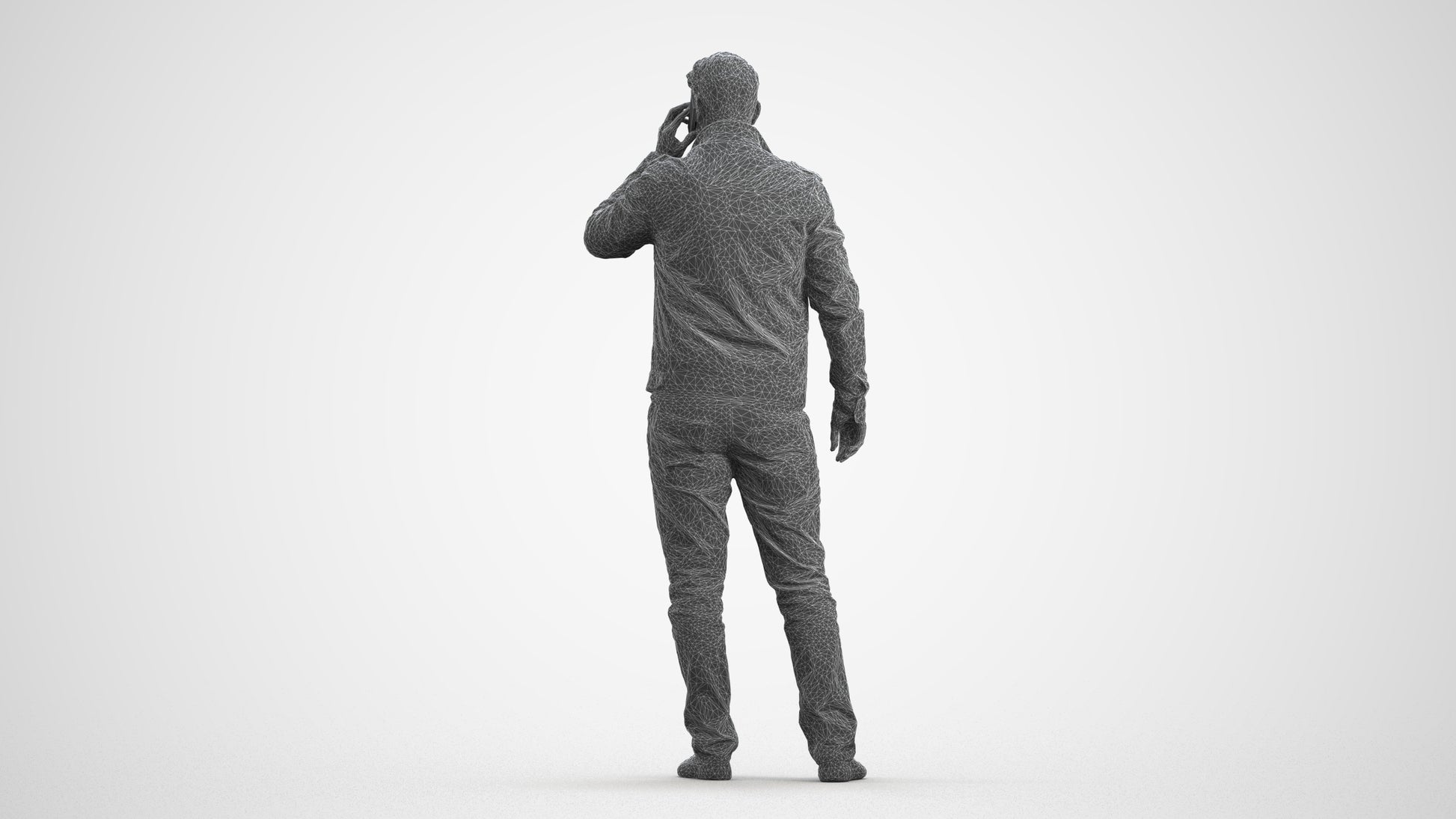 00157Connor003, architectural visualization, people, human, crowd, Man, brown jacket, talking, cell phone,casual, conversation