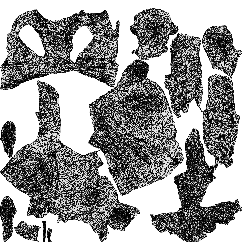 3D model (~40k triangles, ~20k vertices per person) + 2k jpg color texture.