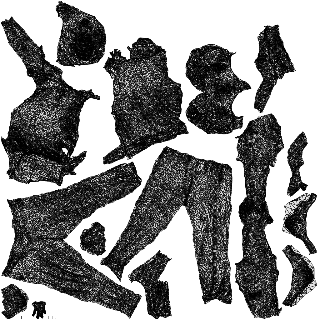 3D model (~40k triangles, ~20k vertices per person) + 2k jpg color texture.