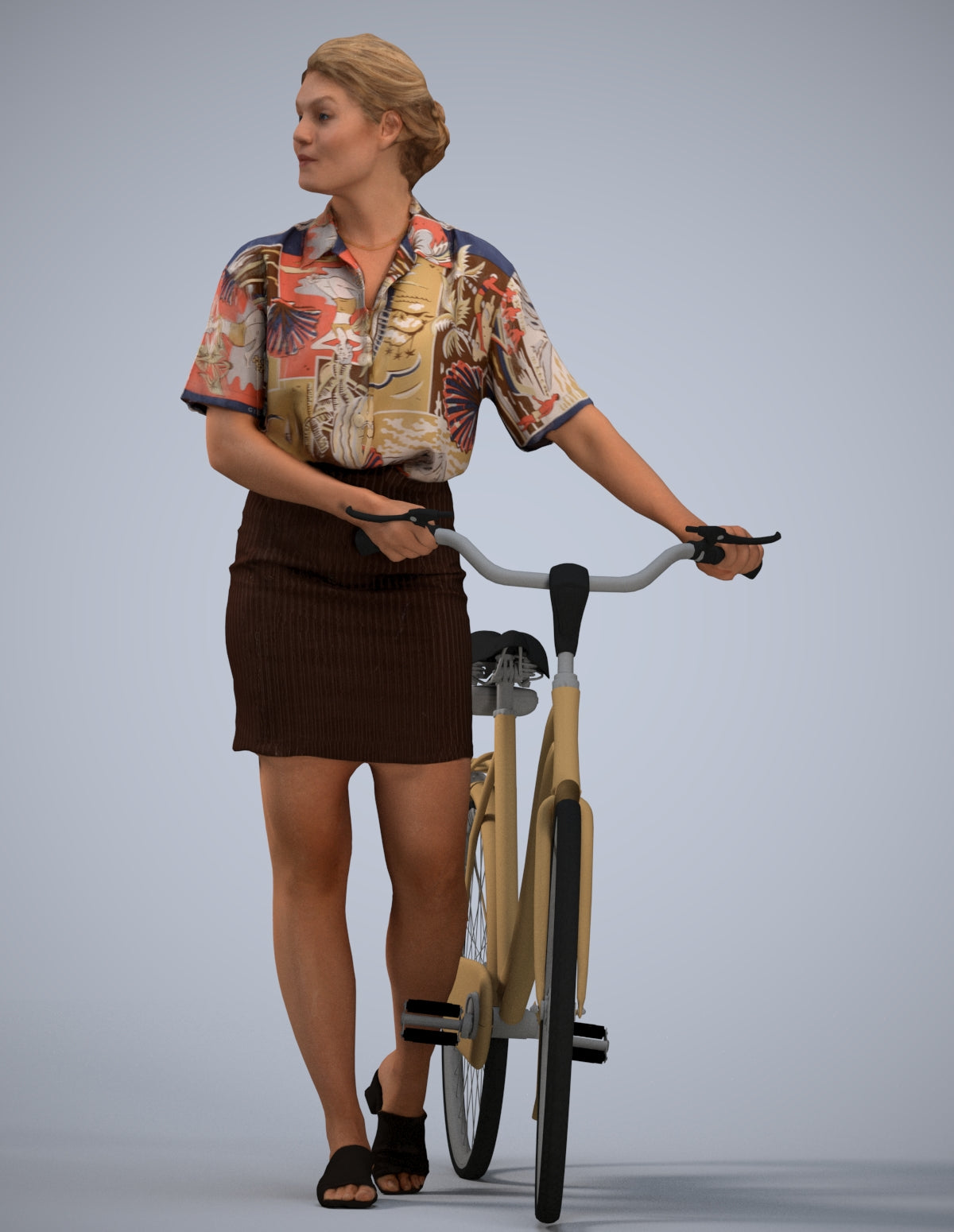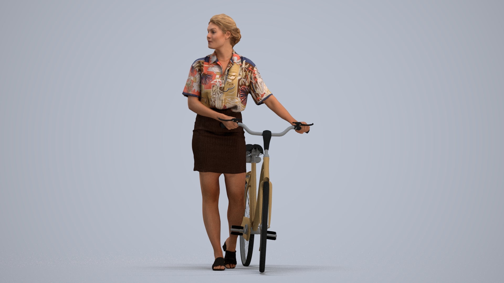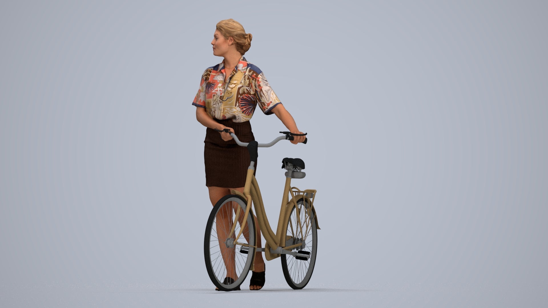 female, adult, caucasian, standing, casual, summer, public, bicycle, commuting, 1_people, cycling, summerwear, 00402_Mila017, bike, cycling, cyclist, biking, rider, woman, lady, pedestrian, city, urban, transport, recreation, leisure, bicyclist, bycicle, street, outdoor, transportation, exercise