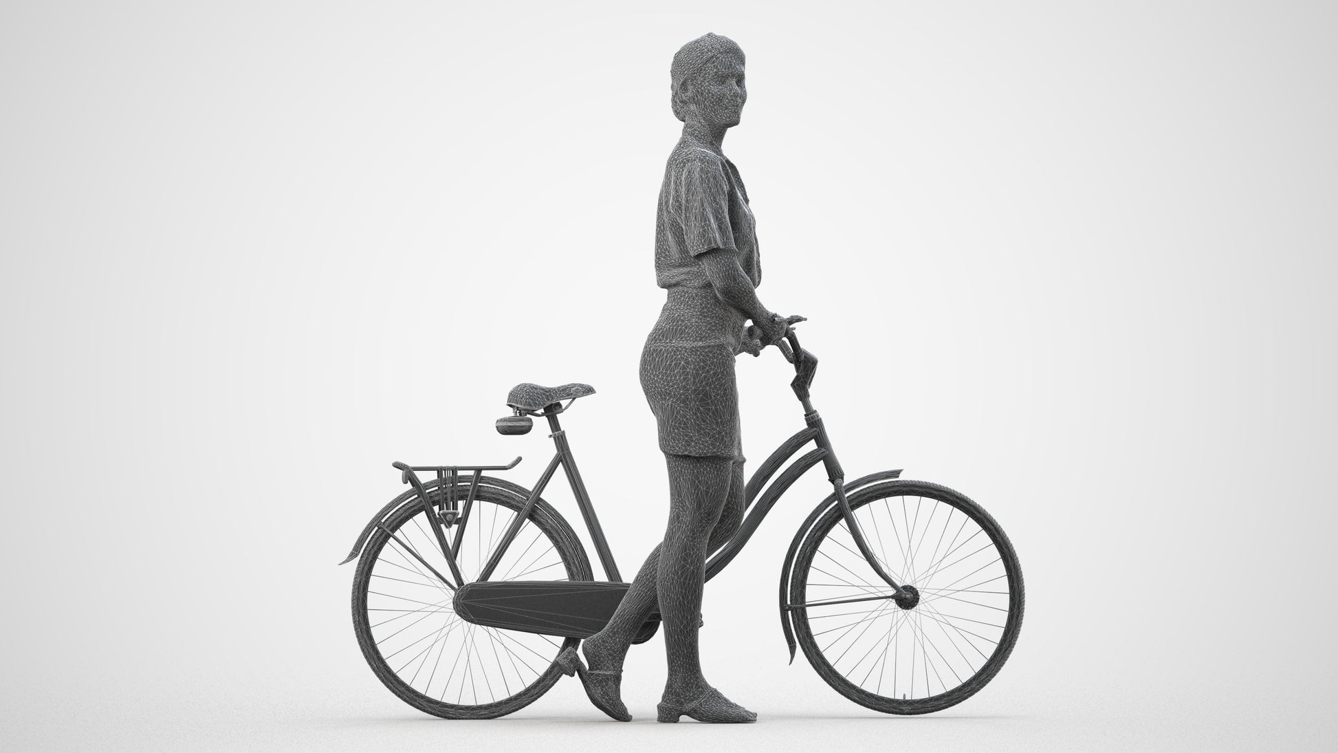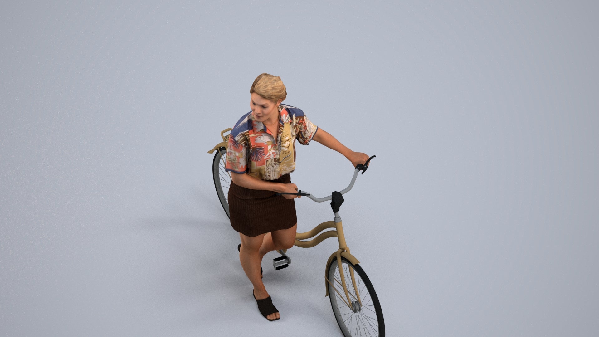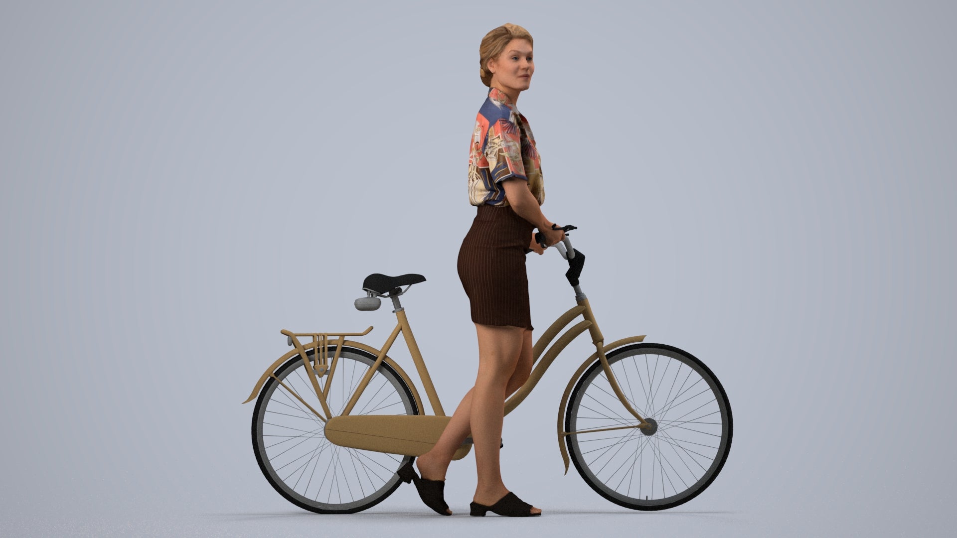 female, adult, caucasian, standing, casual, summer, public, bicycle, commuting, 1_people, cycling, summerwear, 00402_Mila017, bike, cycling, cyclist, biking, rider, woman, lady, pedestrian, city, urban, transport, recreation, leisure, bicyclist, bycicle, street, outdoor, transportation, exercise