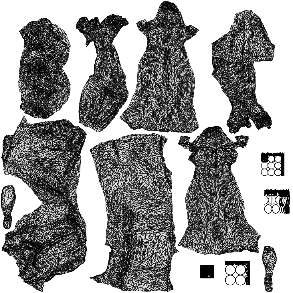 3D model (~40k triangles, ~20k vertices per person) + 2k jpg color texture.