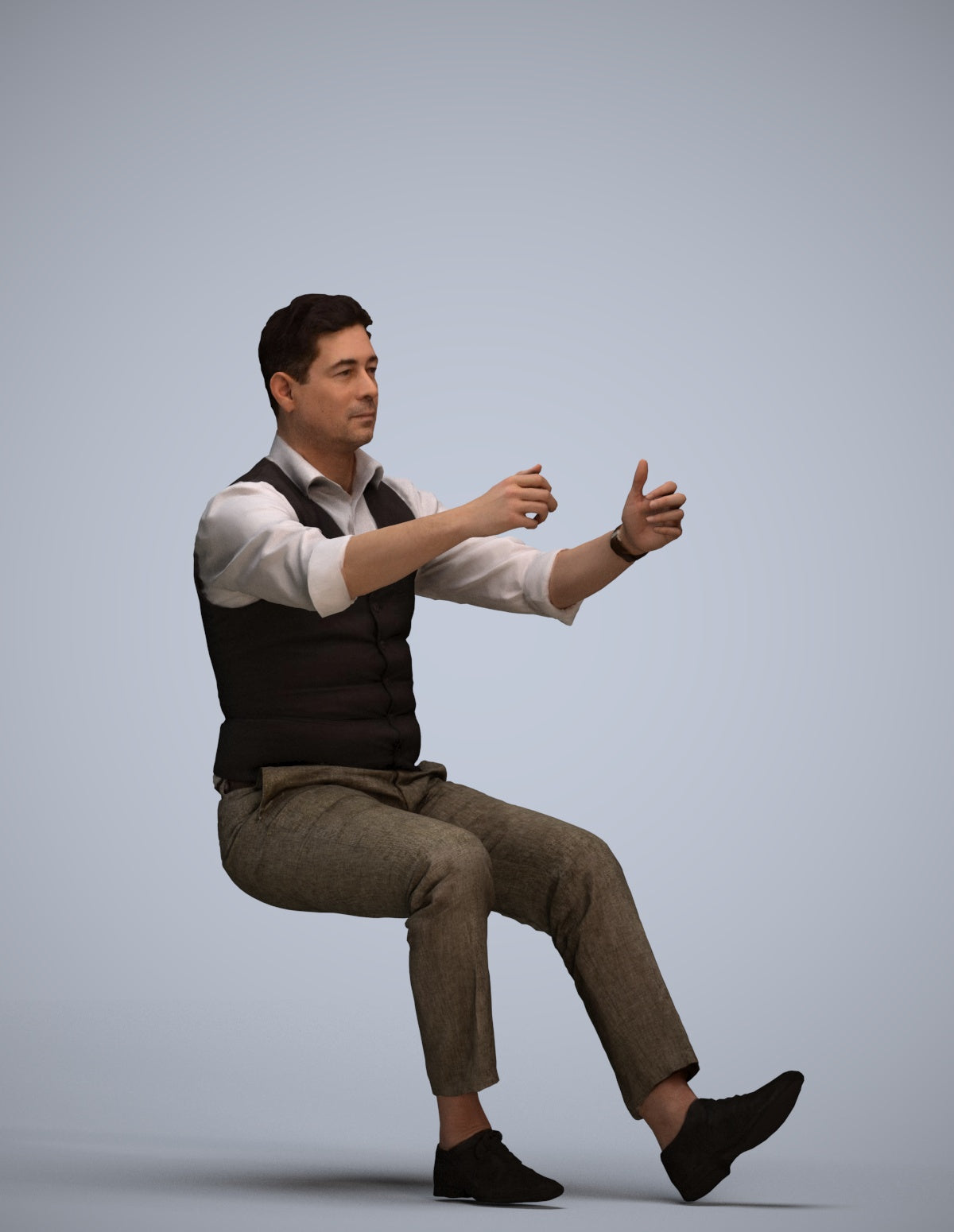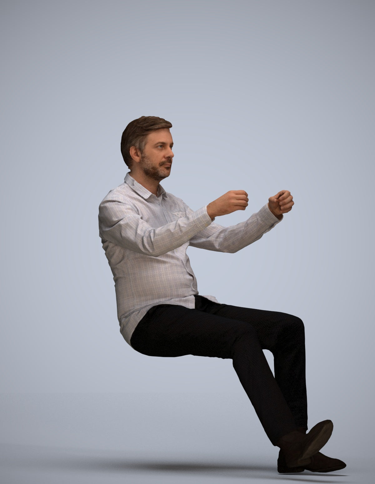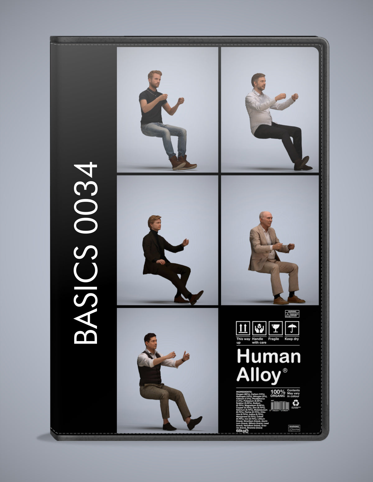 A set containing 5 models of male people driving.
