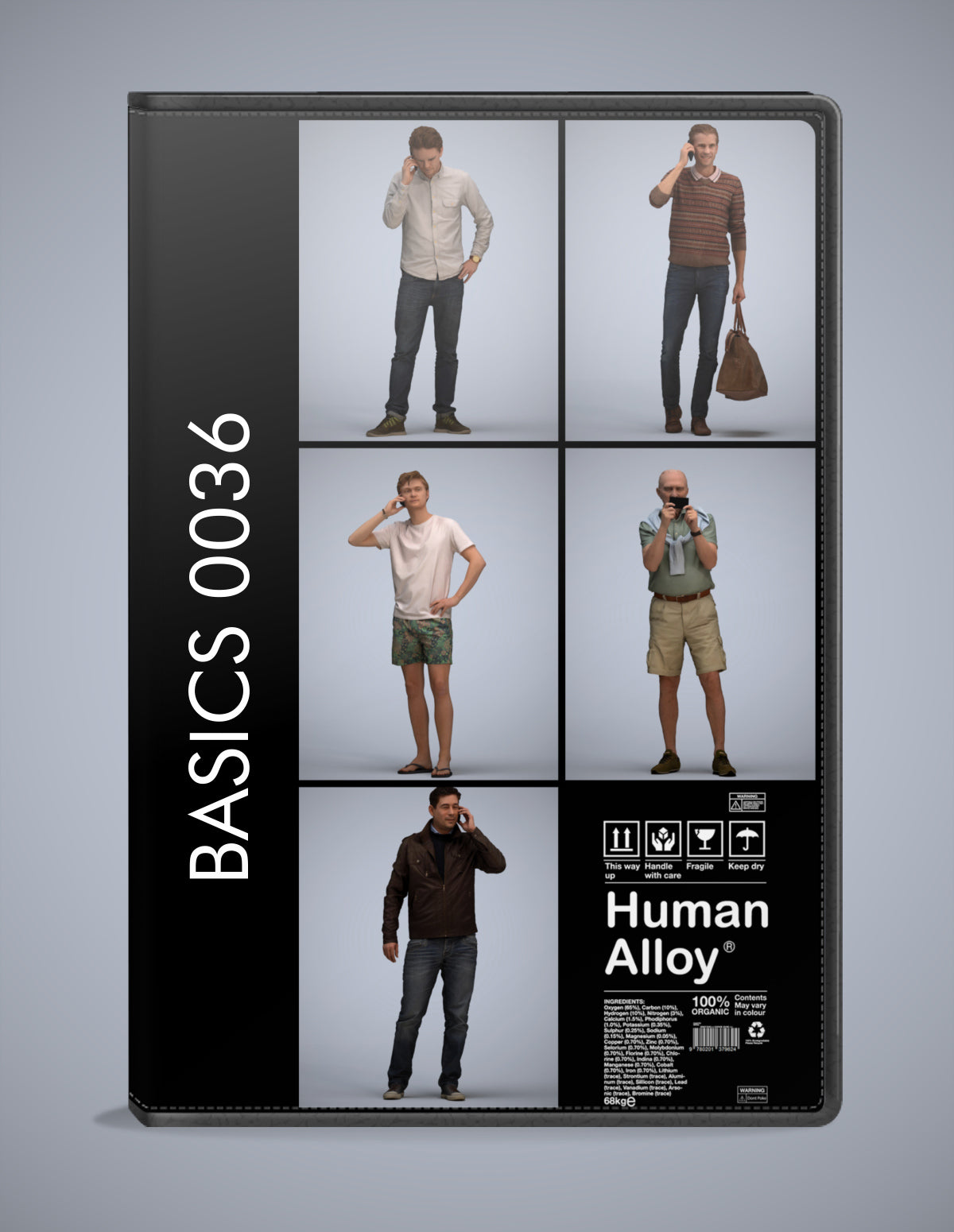 A set containing 5 models of male adults standing in casual attire in public settings.